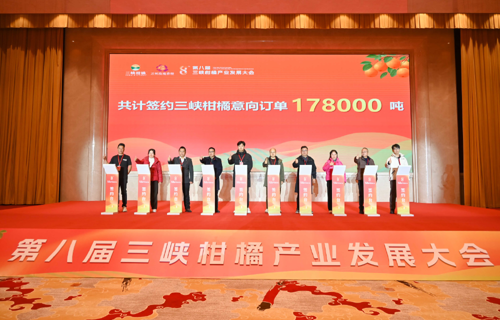签约仪式上,多家企业与三峡库区各地相关主体签约,累计签订柑橘销售意向订单17.8万吨。