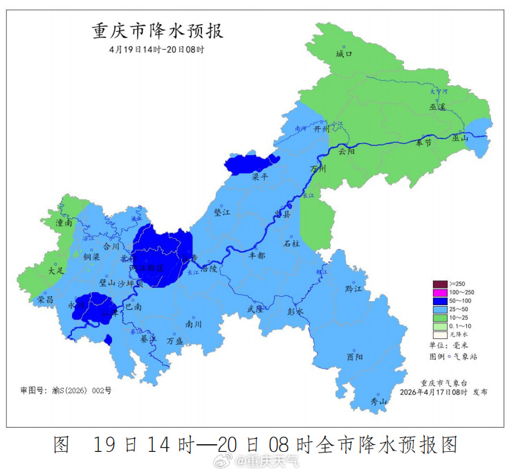 19日上午,各地多云到晴,午后到夜间,自西向东陆续出现阵雨或雷雨,雨量中到大雨,中西部部分地区暴雨(50~70 毫米),雷雨时伴有6~8 级阵性大风,局地有冰雹,气温12~32℃;中心城区多云,午后到夜间有阵雨或雷雨,雨量中到大雨,局地暴雨,气温17~30℃。