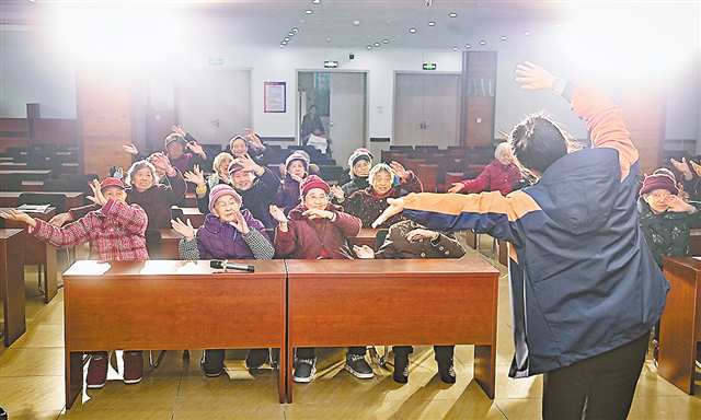 12月12日,涪陵区福利院,老人们在护理员带领下学习手指舞。记者 郑宇 摄\视觉重庆