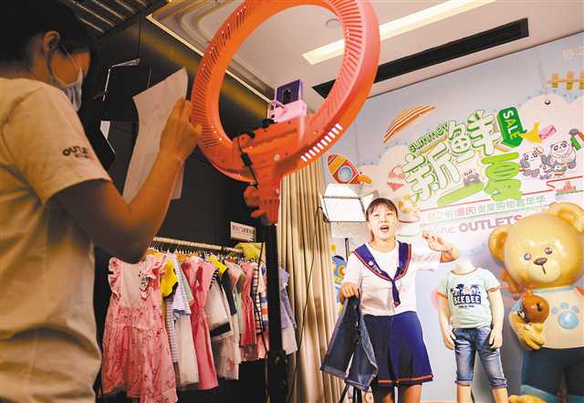 五月五日,两江新区砂之船奥特莱斯,商家正在直播带货。记者 张锦辉 摄