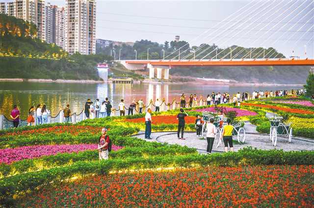 5月5日,潼南涪江国家湿地公园,游客在赏花、观江景,乐享假日时光。通讯员 李扬 廖素兰 摄