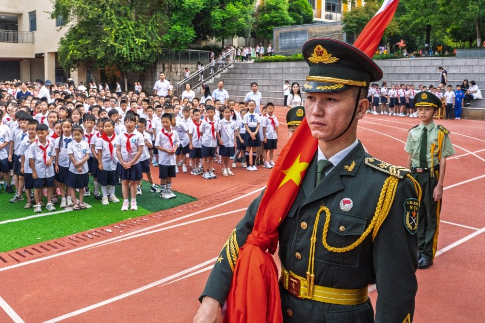 9月1日,重庆市永川北山中学举行主题为“启航新学立壮志·烽火忆昔颂华章”的2025年秋期开学典礼暨抗战胜利80周年庆祝仪式。特约摄影 陈仕川