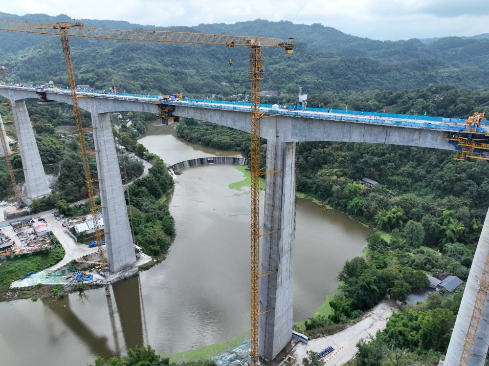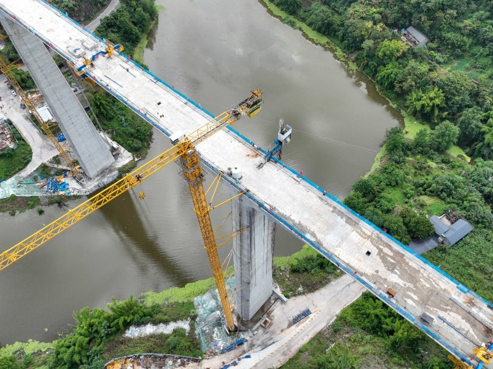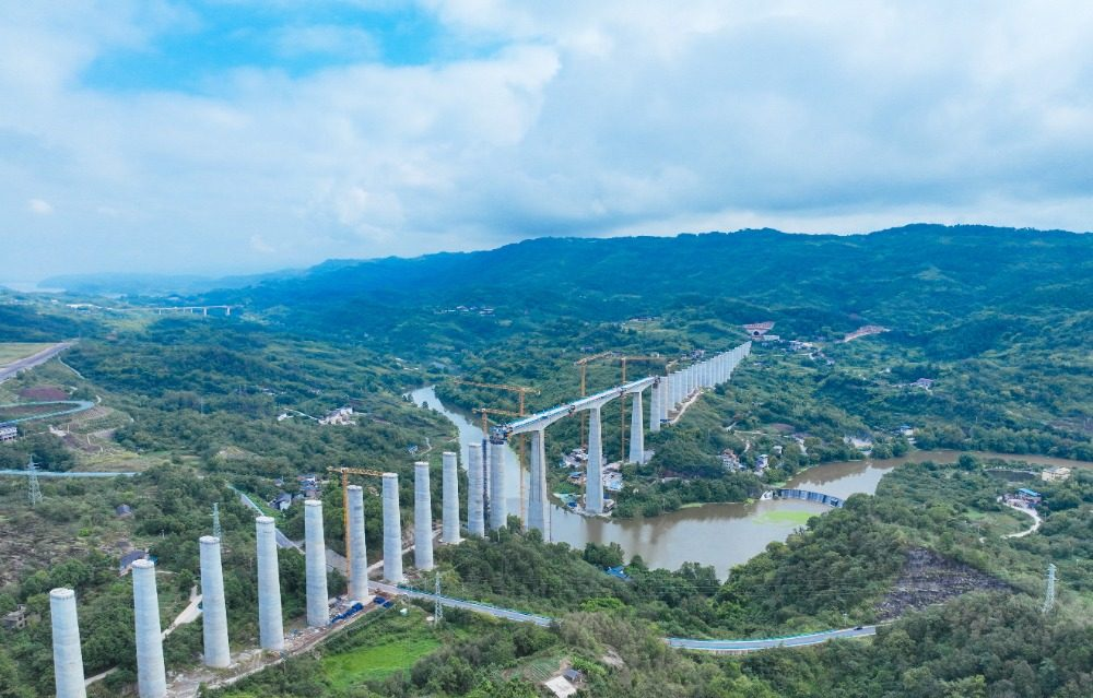 9月24日,渝万高铁五布河双线特大桥成功合龙,为全线贯通奠定坚实基础(无人机照片)。特约摄影 李攀
