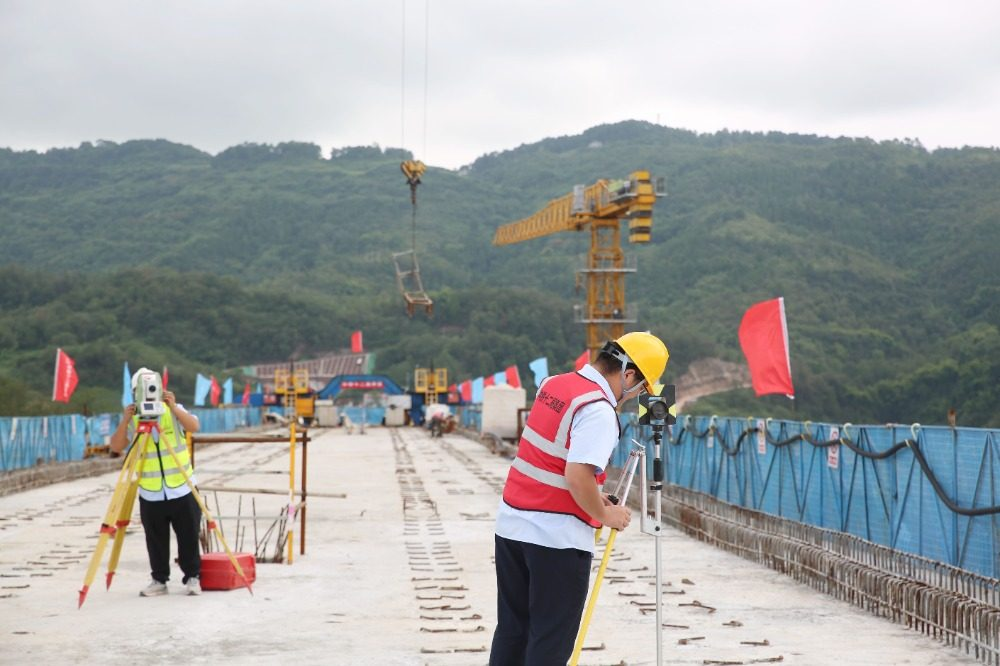 9月24日,渝万高铁五布河双线特大桥施工现场,工人正在进行合龙扫尾工作。特约摄影 李攀