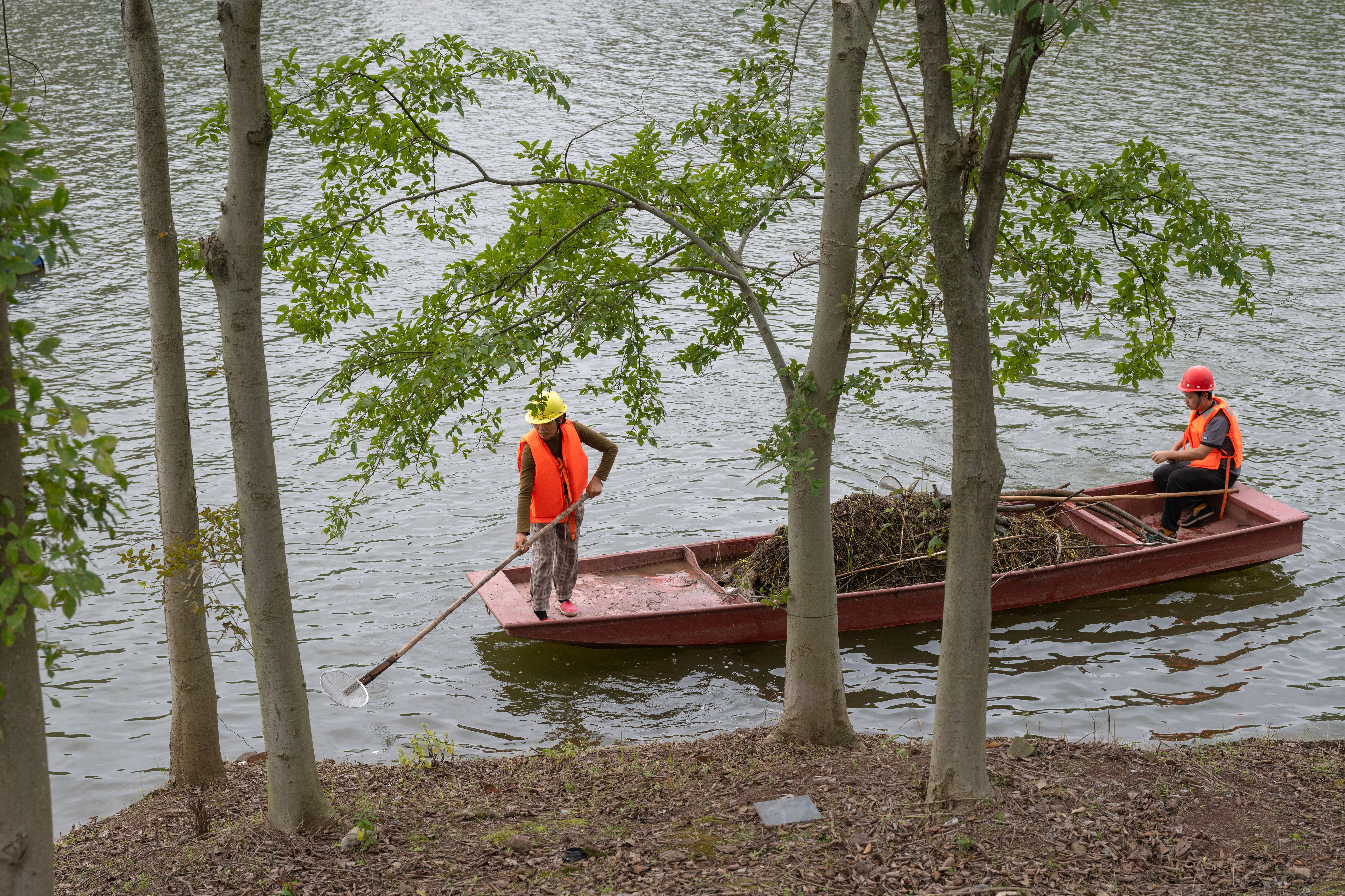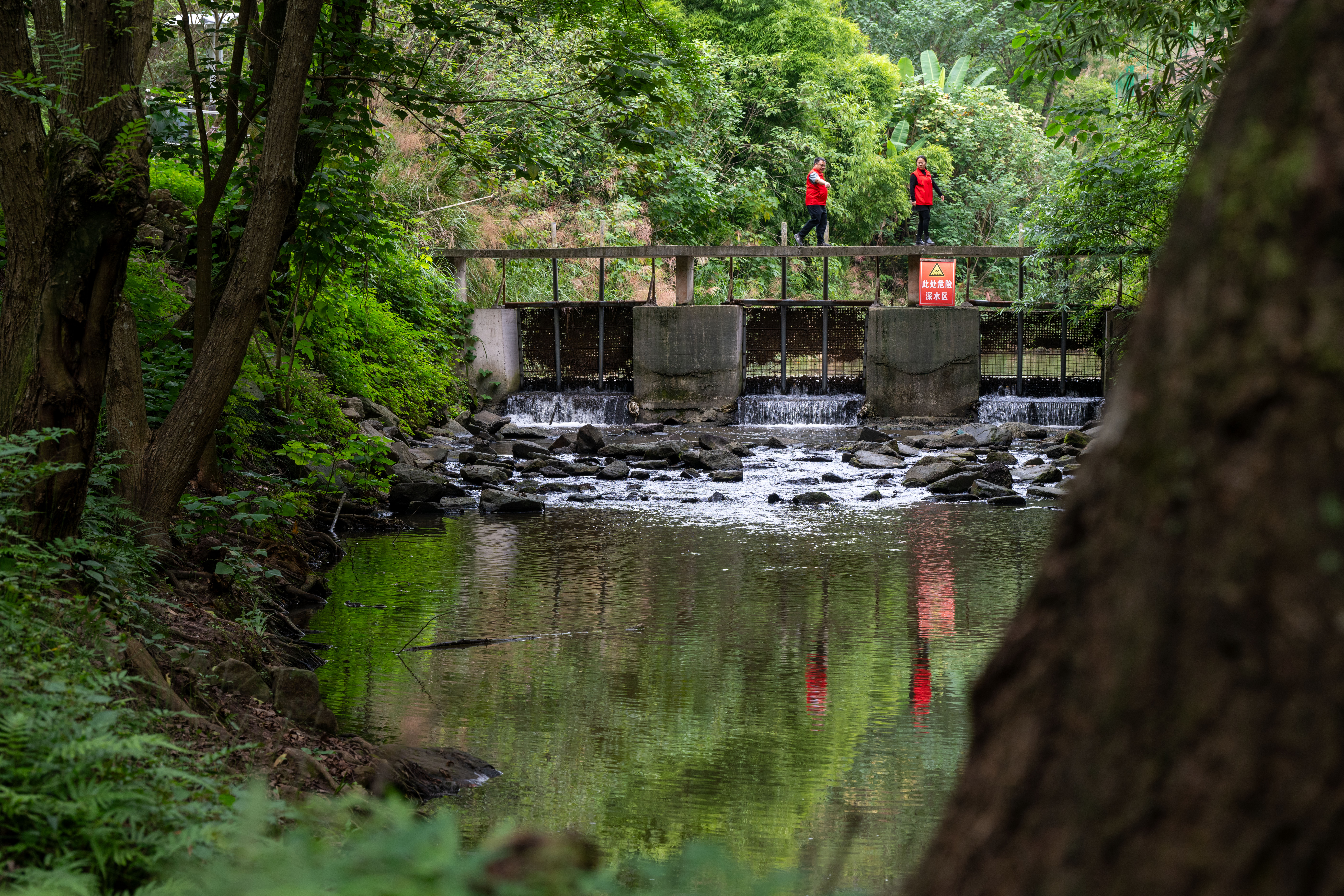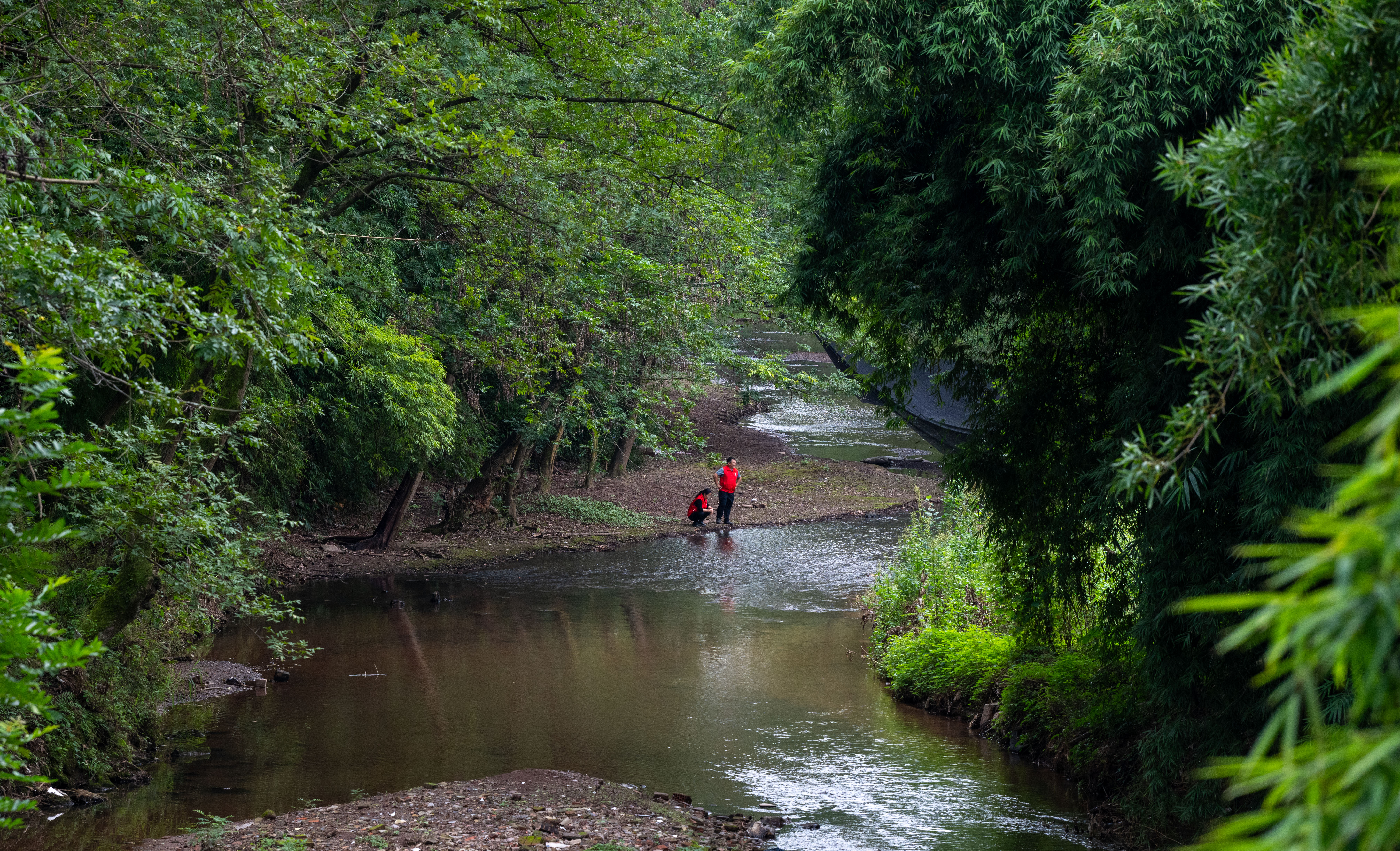 2025年10月27日,渝北区王家街道,工作人员正在巡河。记者 崔力 摄