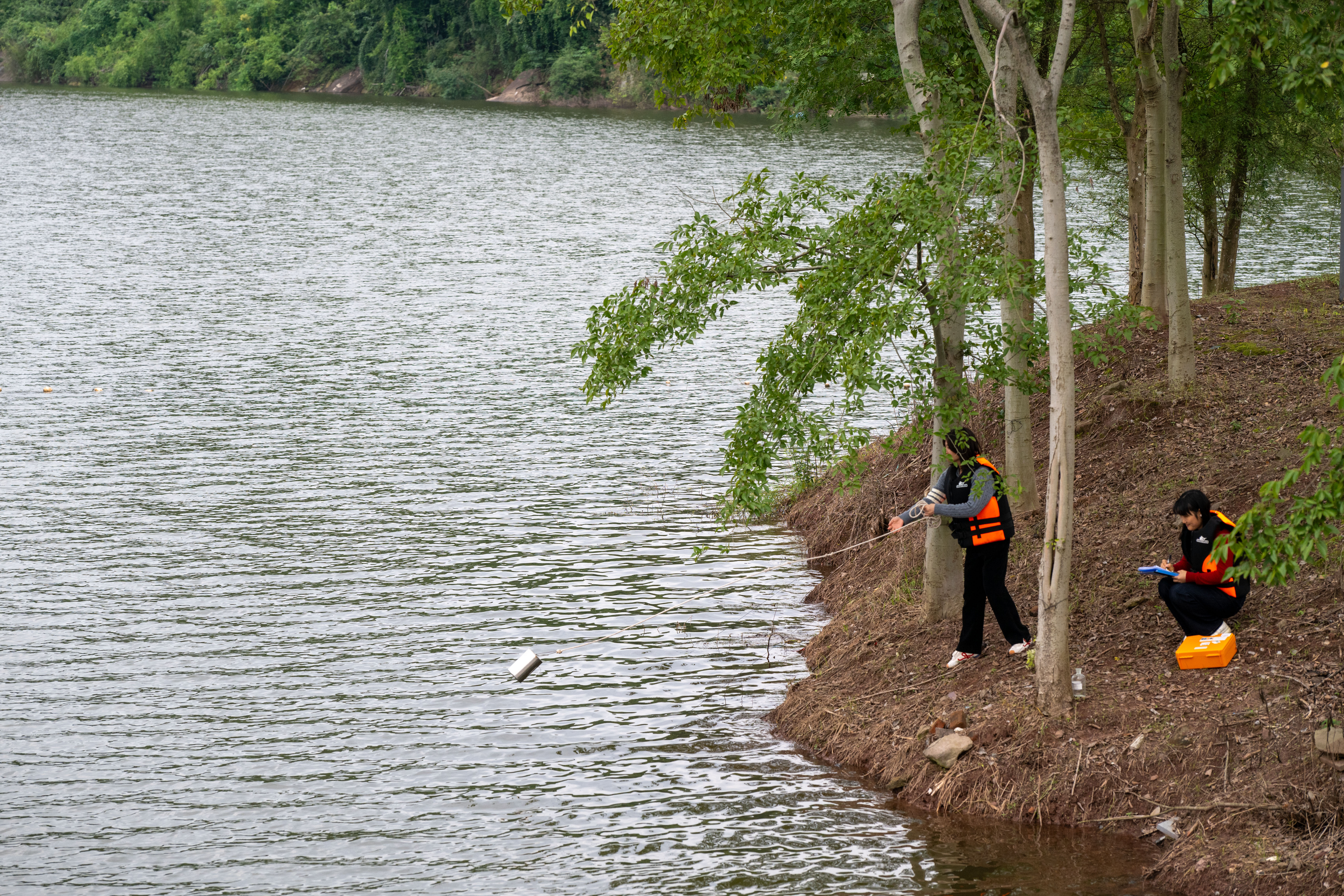 10月27日,渝北区苟溪桥水库,工作人员正在监测水质。记者 崔力 摄