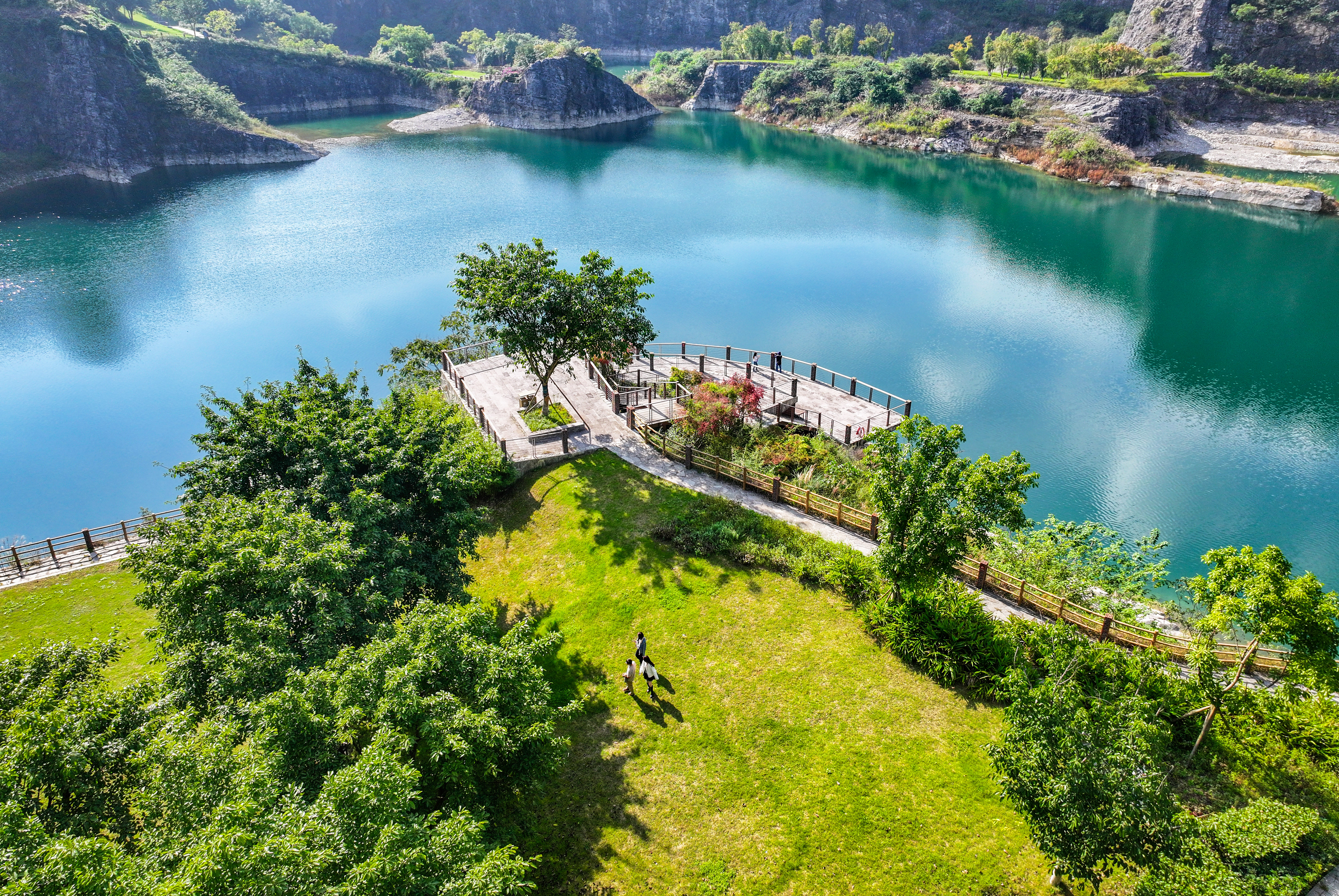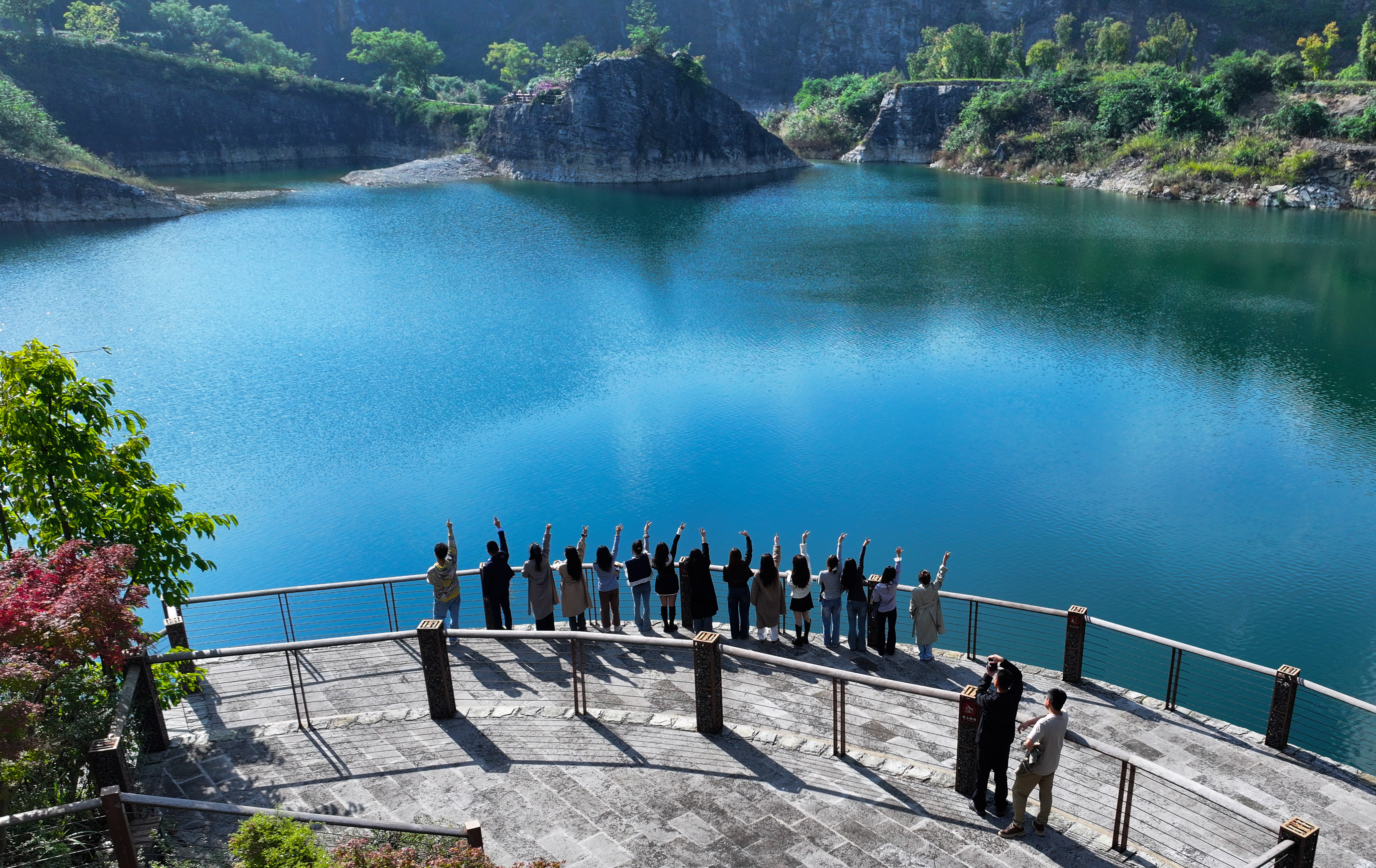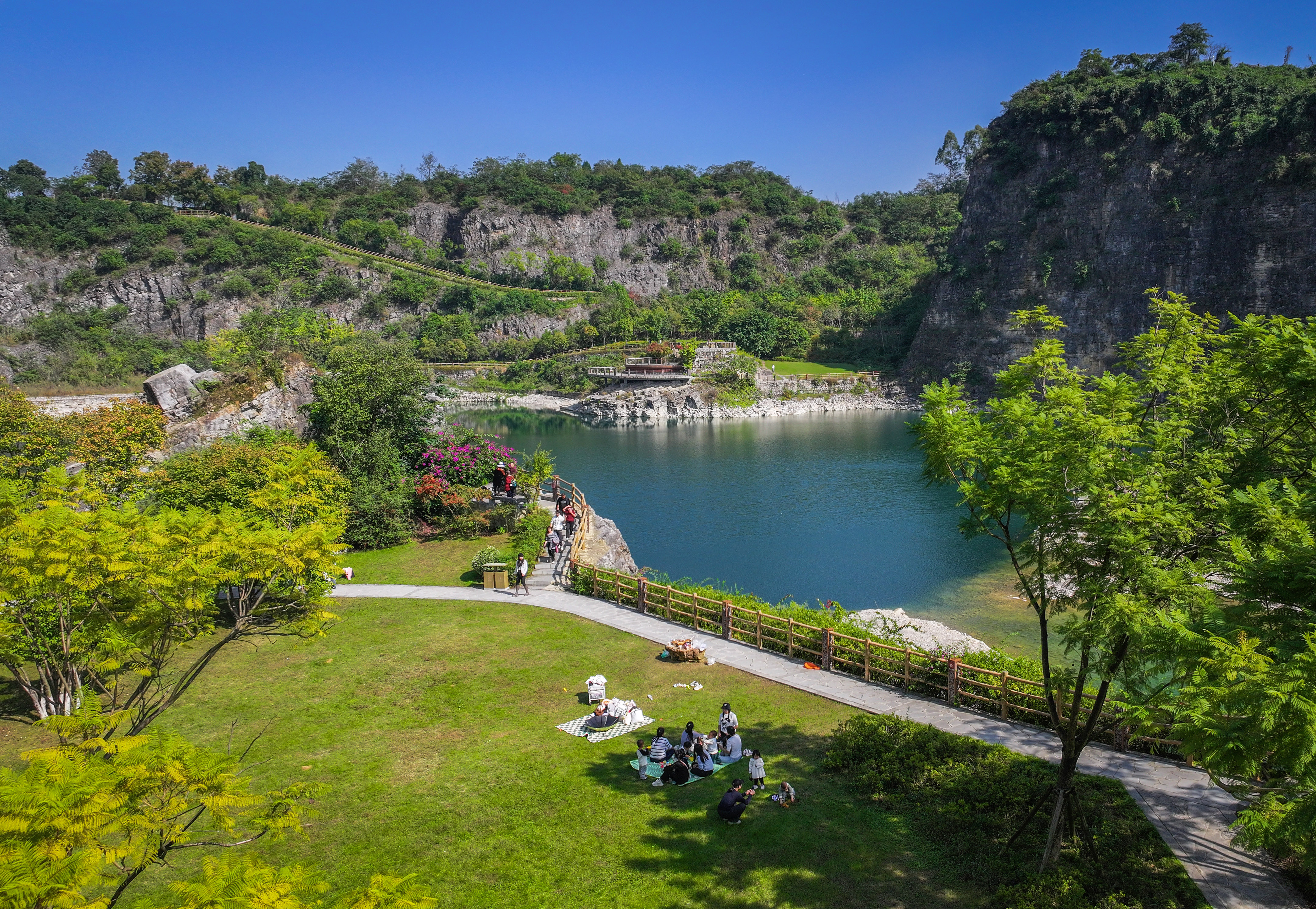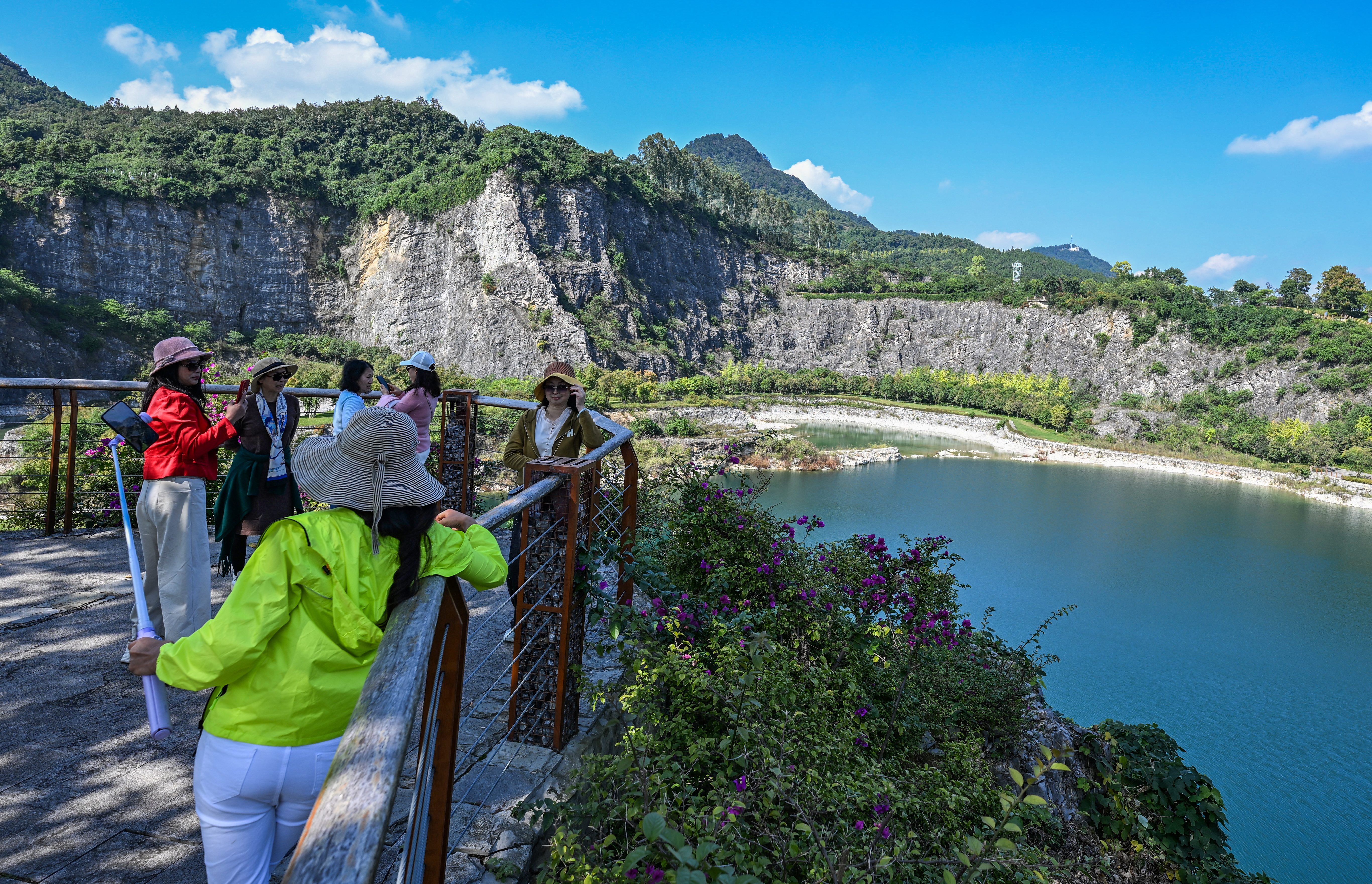 10月28日天朗气清,渝北区铜锣山矿山公园迎来众多市民。这里前身为石灰岩采矿区,经生态修复,废弃矿坑蜕变为生态景区。