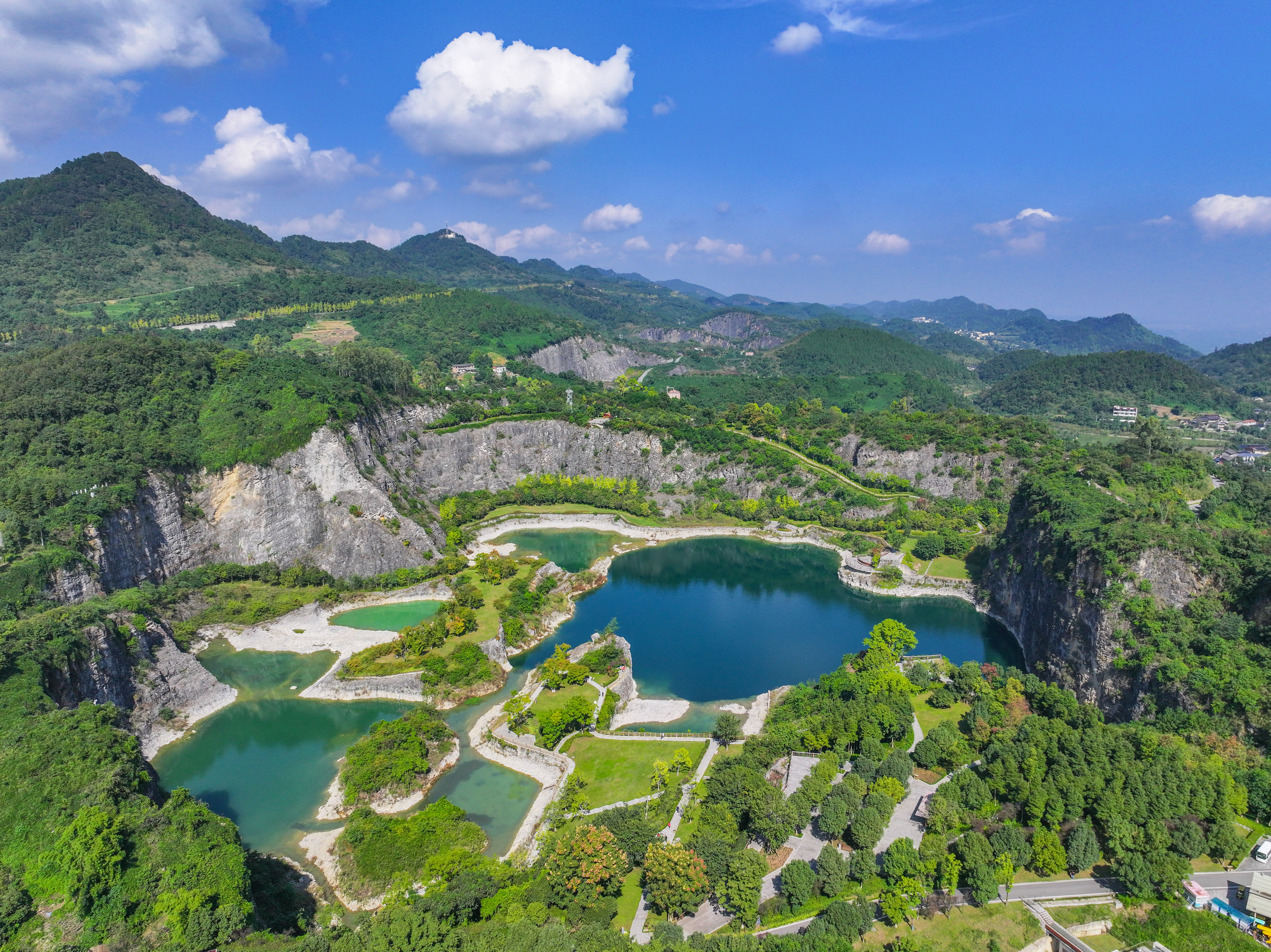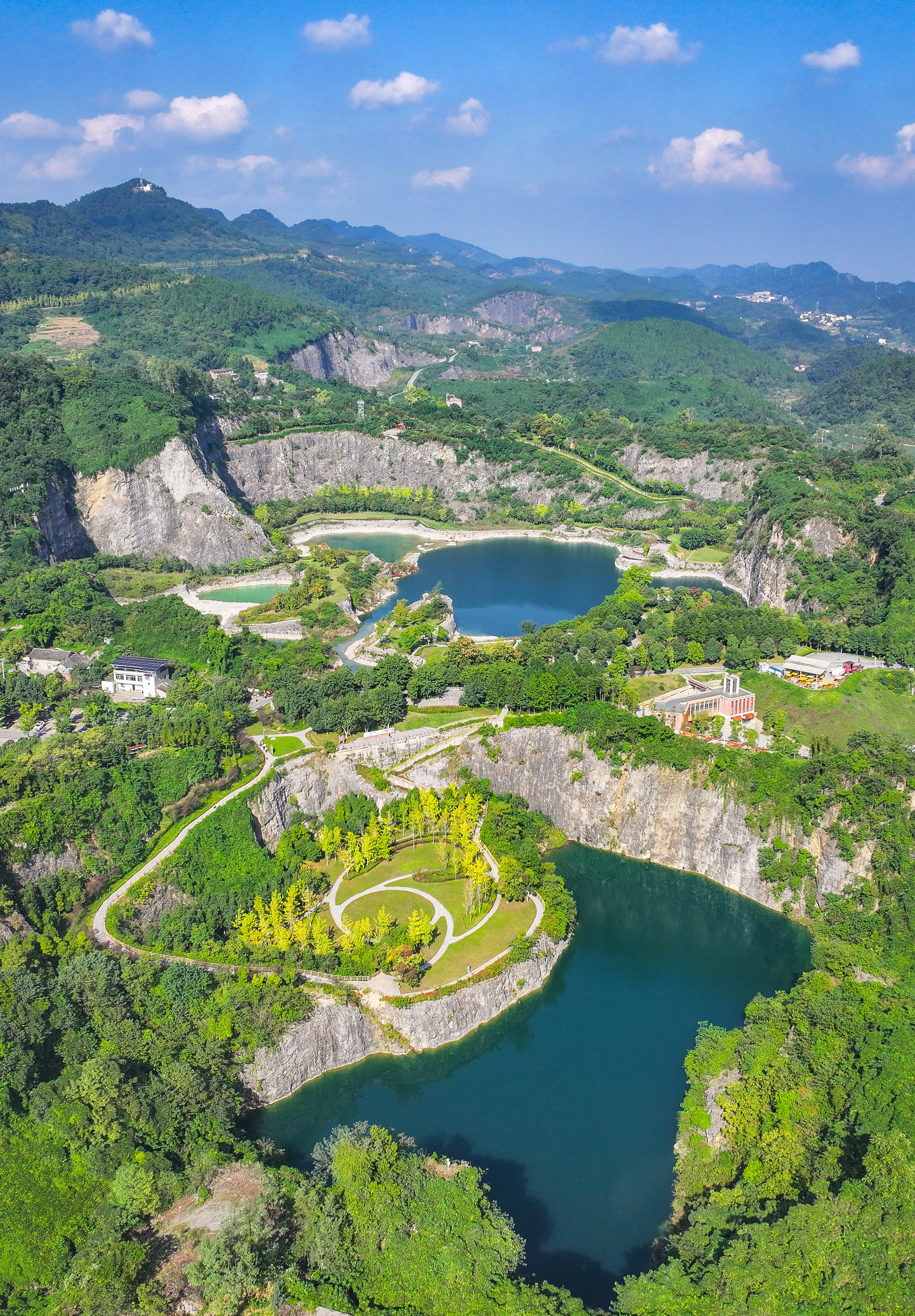 10月28日,渝北区铜锣山矿山公园,矿坑碧水凝翠,恰似一颗镶嵌在山间的蓝宝石。首席记者 龙帆 摄