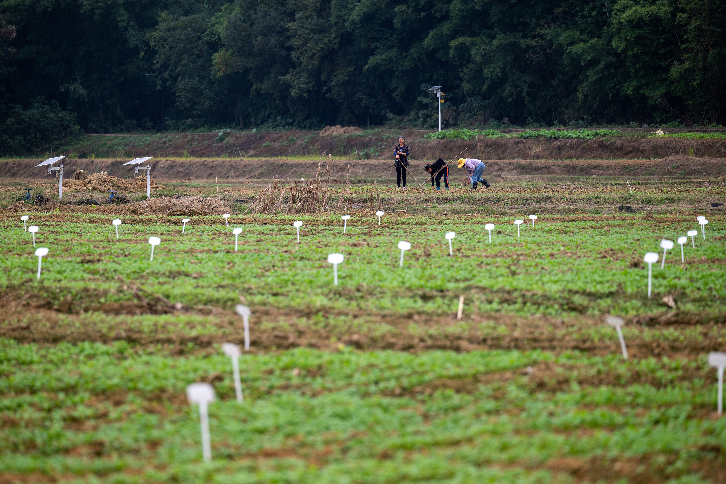 11月4日,潼南区桂林街道八角村重庆市现代种业创新基地内,科研人员们在田间劳作。记者 张春晓 摄