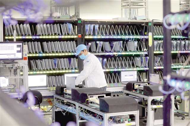 广达(重庆)制造基地工人正在组装笔记本电脑 摄/雷键