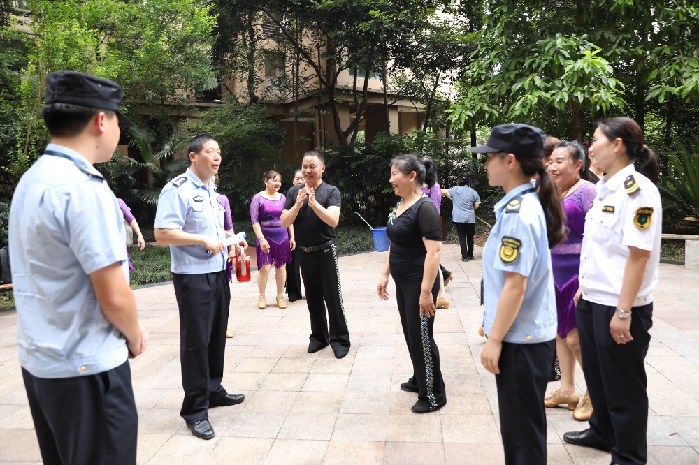 下沉到小区的执法人员对坝坝舞噪音扰民行为进行劝导。璧山区委宣传部供图