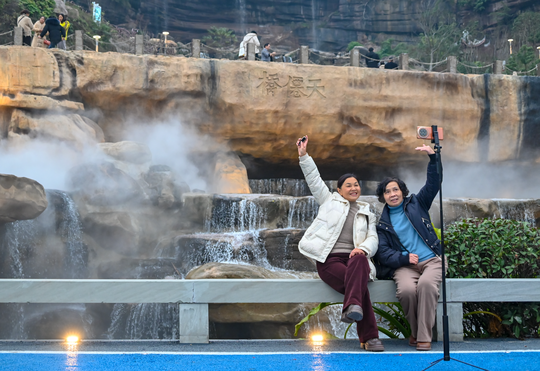 2025年12月30日,万州区北滨公园,不少市民在石琴响雪景点游玩、打卡。通讯员 付作侨 摄