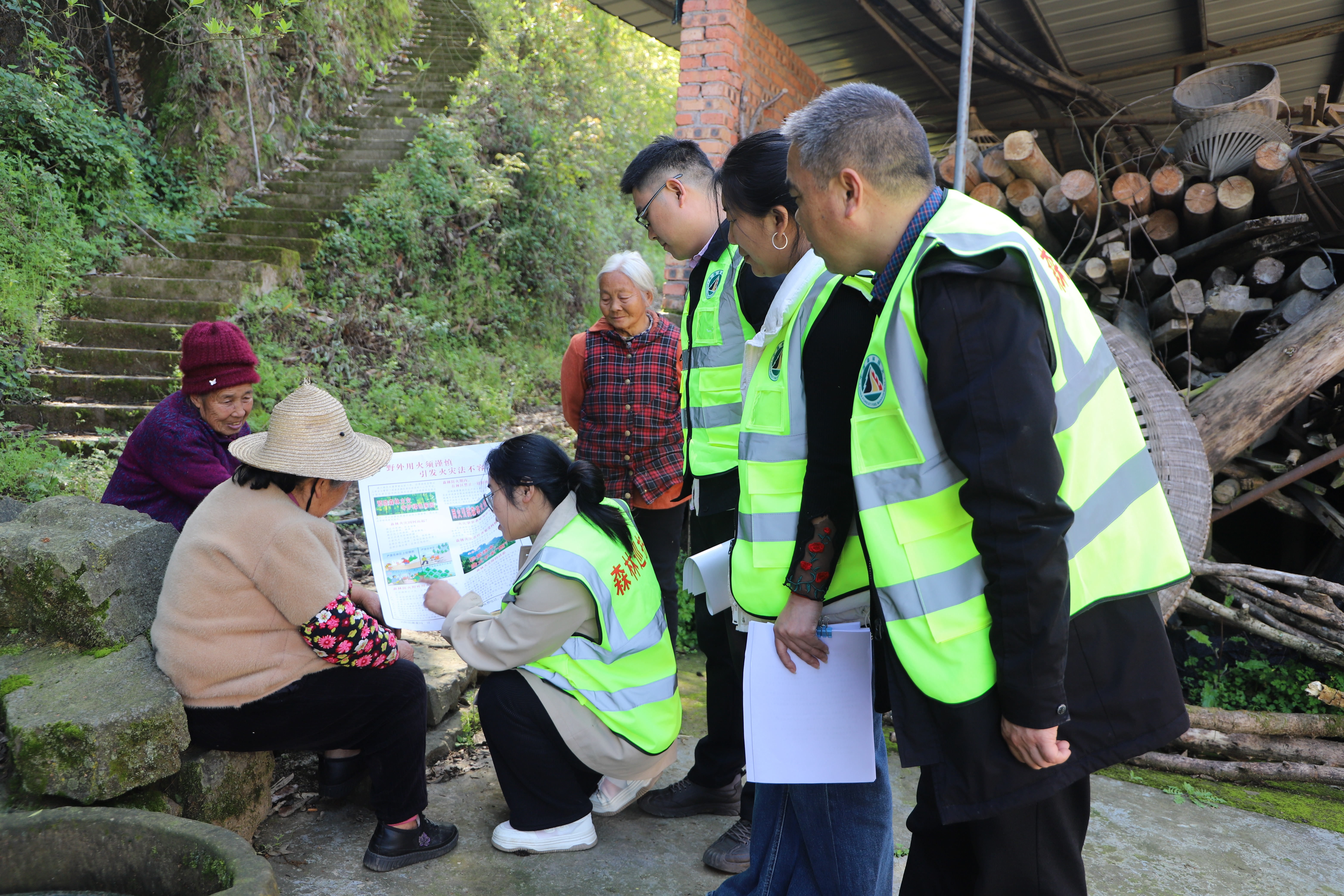 云阳县泥溪镇长柏村护林队向林区周边的农户进行森林防火宣传。通讯员 谭启云 摄