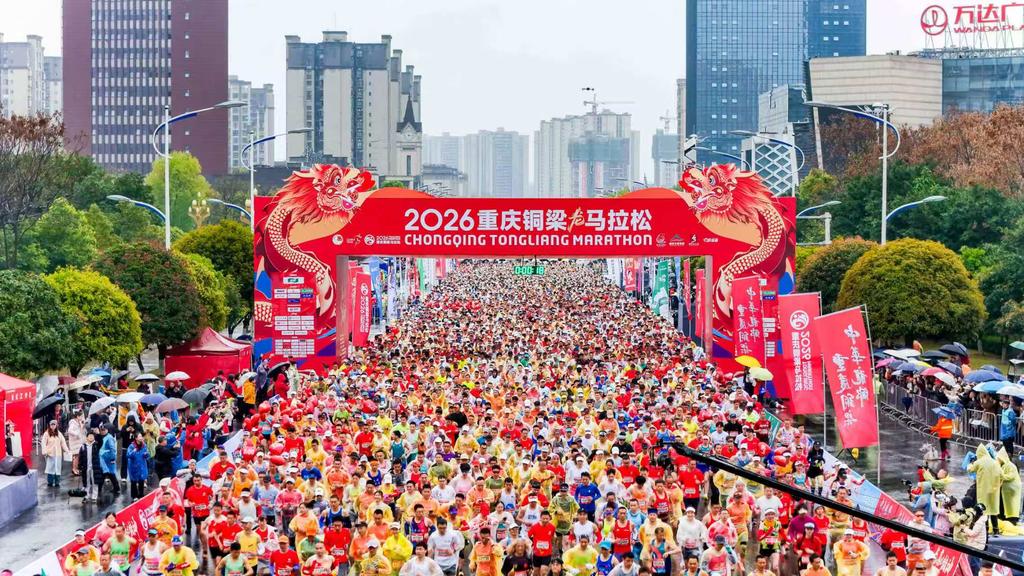 3月15日上午8:00,以“龙马精神”为主题的2026重庆铜梁马拉松在铜梁区龙城天街南广场火热开跑。来自世界各地的6000名跑者齐聚中华龙乡·重庆铜梁,感受铜梁独特的城市活力、非遗魅力和生态之美。