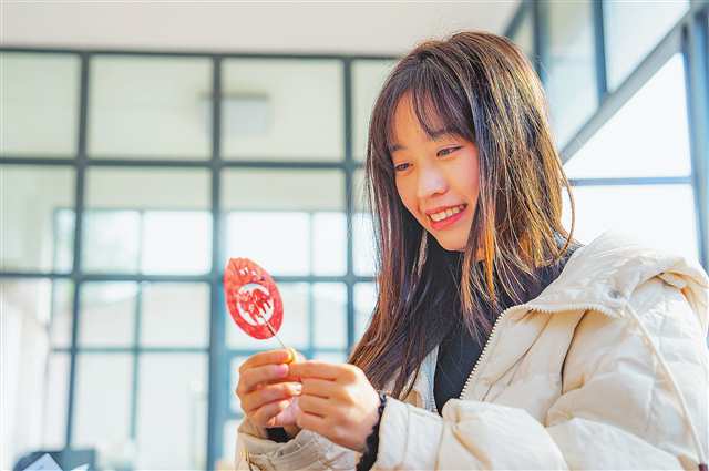 巫山县双龙镇安静村,村民展示用红叶制作的叶雕作品。通讯员 熊威 摄/视觉重庆
