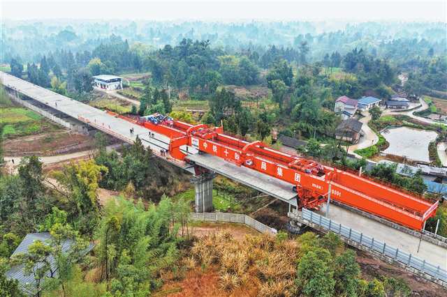 2月9日,随着最后一榀箱梁平稳落位,由中铁十四局承建的成渝中线高铁重庆大足段箱梁架设任务收官,为后续无砟轨道铺设、铺轨施工创造条件。