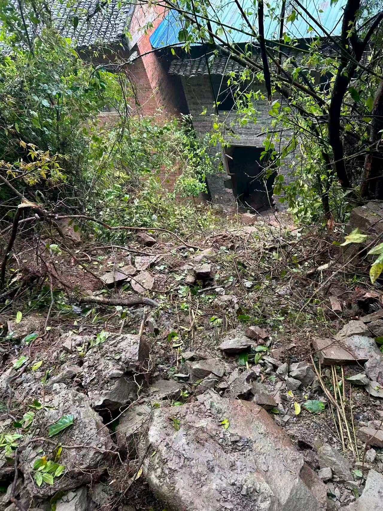 24日中午12:30,预警区域果然发生了危岩崩塌,垮塌方量约50立方米,导致此前转移群众的3户房屋不同程度受损,部分墙体被砸穿。