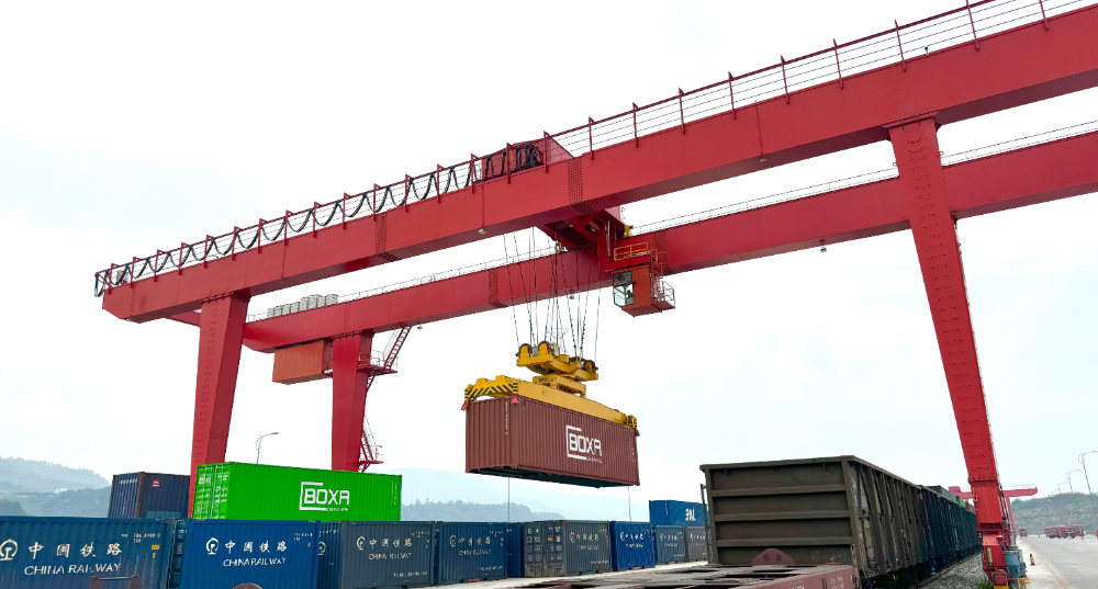 龙头港沿江班列正在装车。何思呈 摄