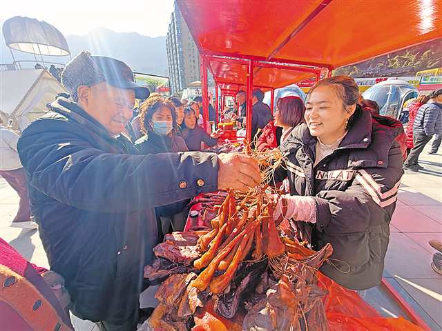 12月25日,陕西省岚皋县岚皋广场,城口土特产吸引了不少当地群众选购。记者 刘冲 摄/视觉重庆