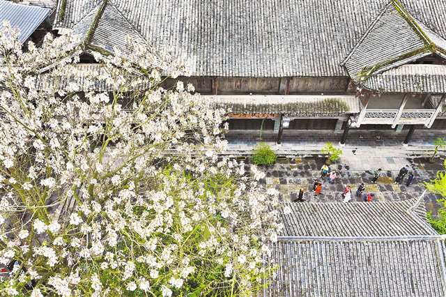 4月4日,黔江区濯水古镇,游客在古镇游玩。特约摄影 杨敏/视觉重庆