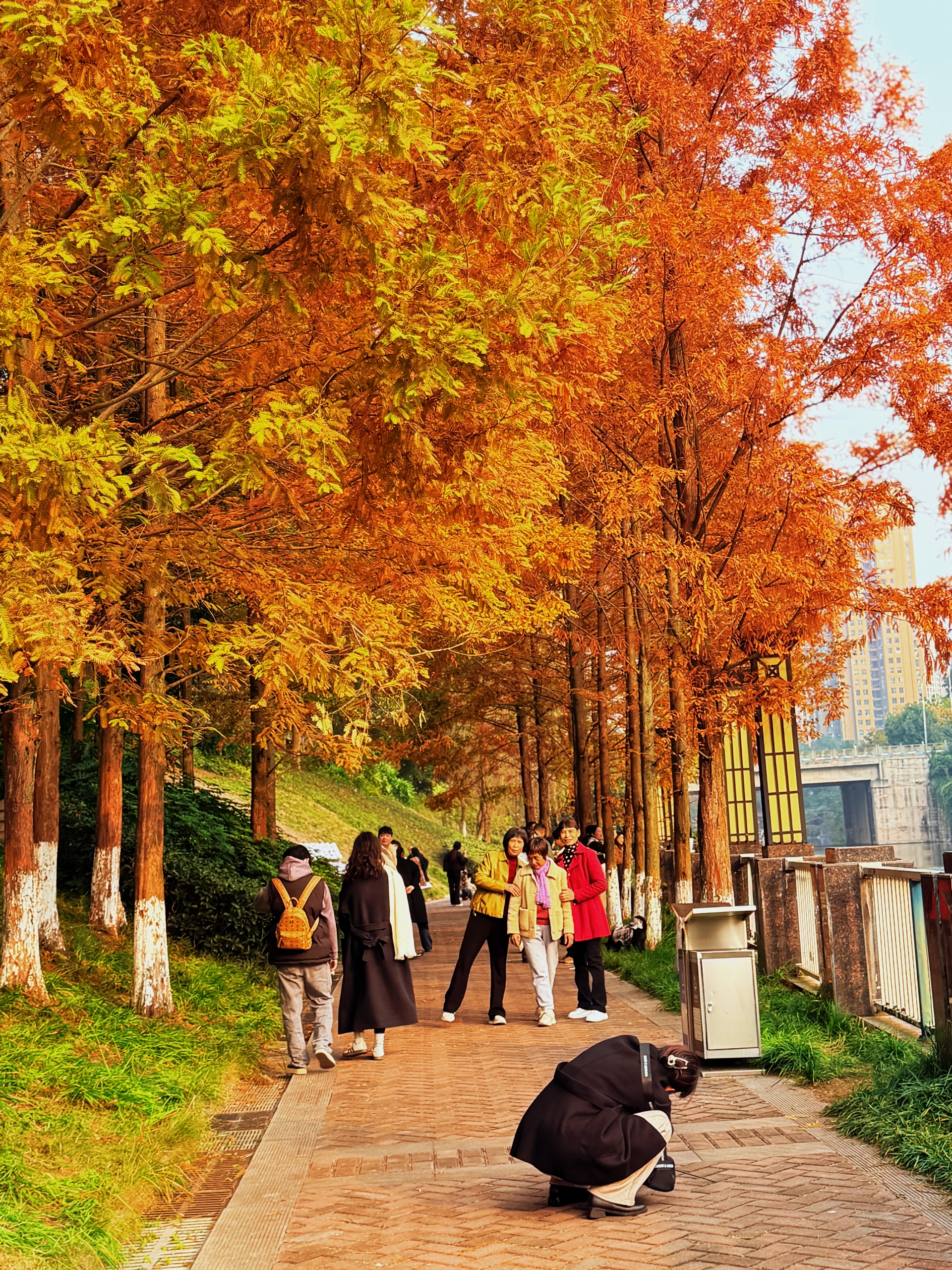 近年来,荣昌不断提升河岸绿化与景观品质,水杉已成为守护水岸的“生态名片”。目前荣峰河畔、迎宾健康主题公园、滨河东路、濑溪河体育文化公园等地的水杉已进入最佳观赏期。不少市民前来打卡,或驻足欣赏,或拍照留念,笑声与快门声此起彼伏。
