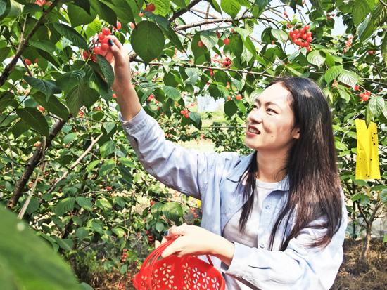 走进双河街道桃之夭夭生态农业园,红艳饱满的樱桃密密匝匝地挂满枝头。“樱桃又大又红,吃起来很甜、入口即化,摘樱桃特别开心。”游客张迪表示。