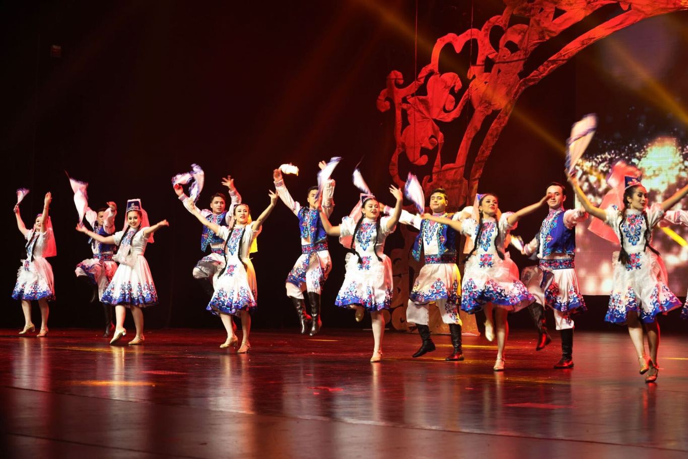 演出简介:歌舞剧《达坂城的姑娘》以同名经典民歌为底色,通过“相遇—相爱—婚礼”的三幕叙事,完整呈现了当地人民的真挚情感与生活图景。演出融合民族婚俗庆典、多民族歌舞,将艾德莱斯绸服饰、冬不拉琴韵等新疆歌舞、服饰、民俗的独特魅力,与当地人民对生活的热爱、对文化的坚守,鲜活地呈现在观众眼前。