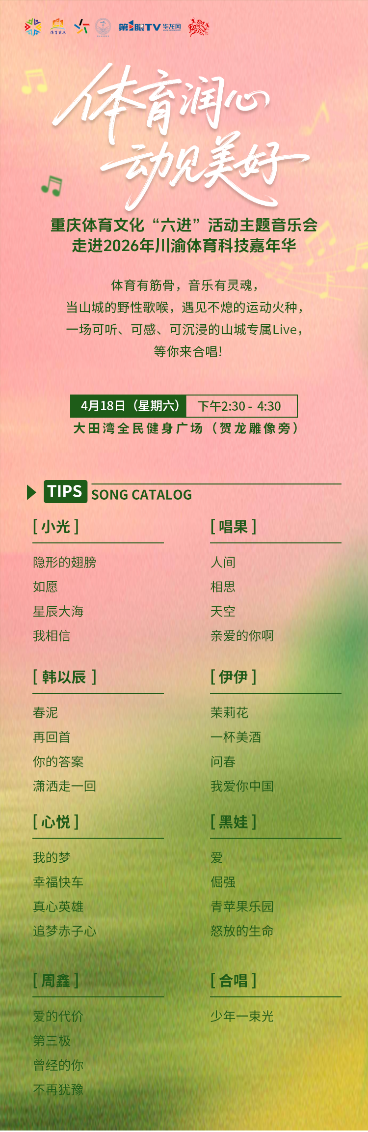 定档4月18日!重庆体育文化“六进”活动主题音乐会歌单正式揭晓
