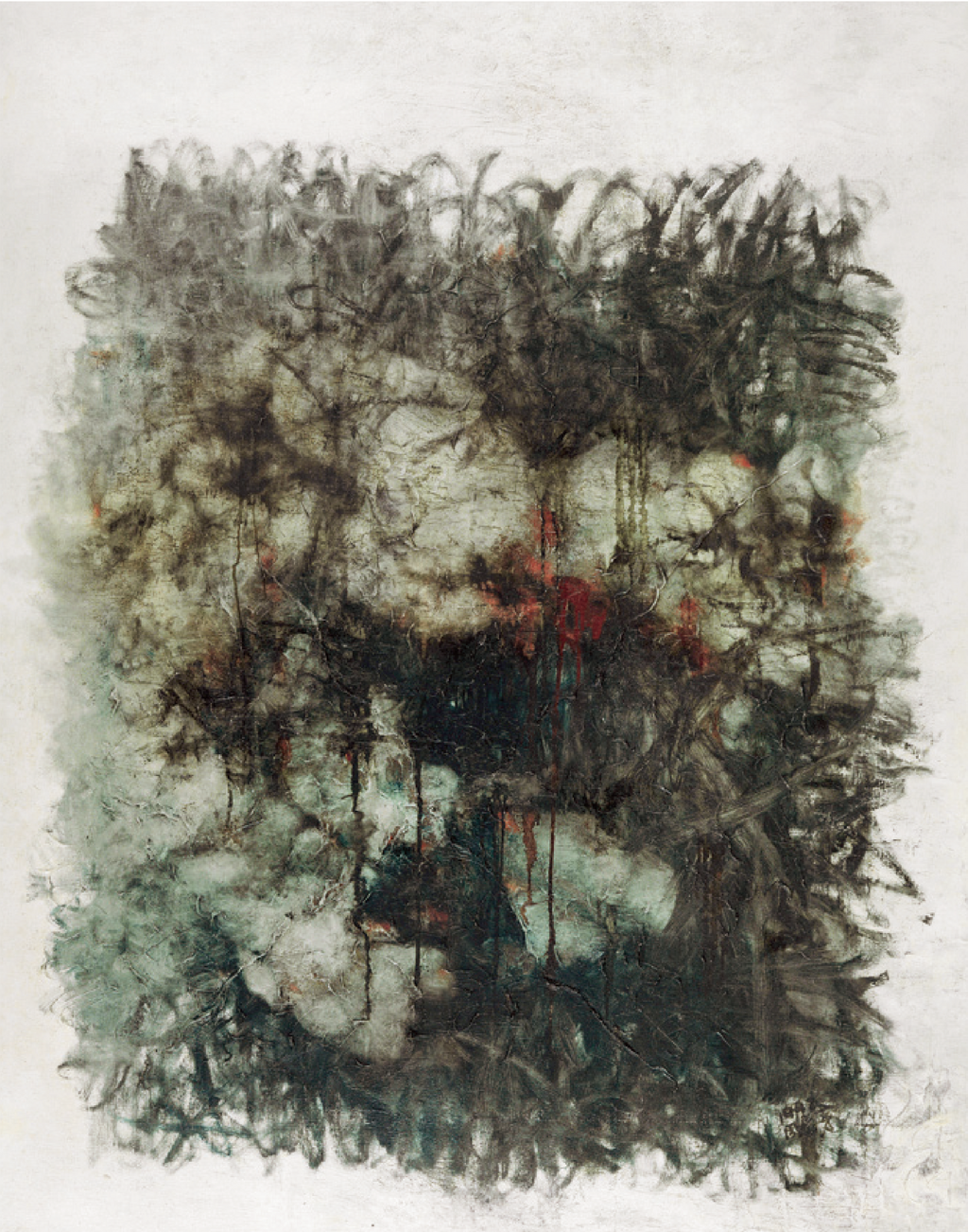 周春芽的油彩作品《黑色的线条,红色的人体》
