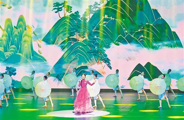 七月二十六日晚,重庆大剧院,“我们的中国梦——文化进万家”中国文联文艺志愿服务团走进重庆文艺演出活动举行。图为歌曲《情满山水间》。记者 齐岚森 摄\视觉重庆