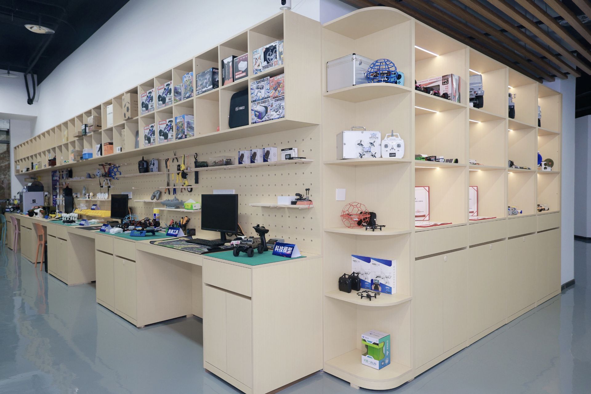 在服务“15分钟生活圈”方面,中心将前沿科技资源下沉至社区。社区科学实验室配备人形机器人、3D打印机、无人机动力系统测试台架等先进设施,引进国内领先的人形机器人互动展示平台,让青少年在“家门口”就能感受最新科技魅力。同时,中心积极布局科技体育板块,建立了专业的车辆模型赛道和无人机训练场,提供系统化的车辆模型操控课程和无人机足球培训项目,助力青少年提升工程思维与实战技能。