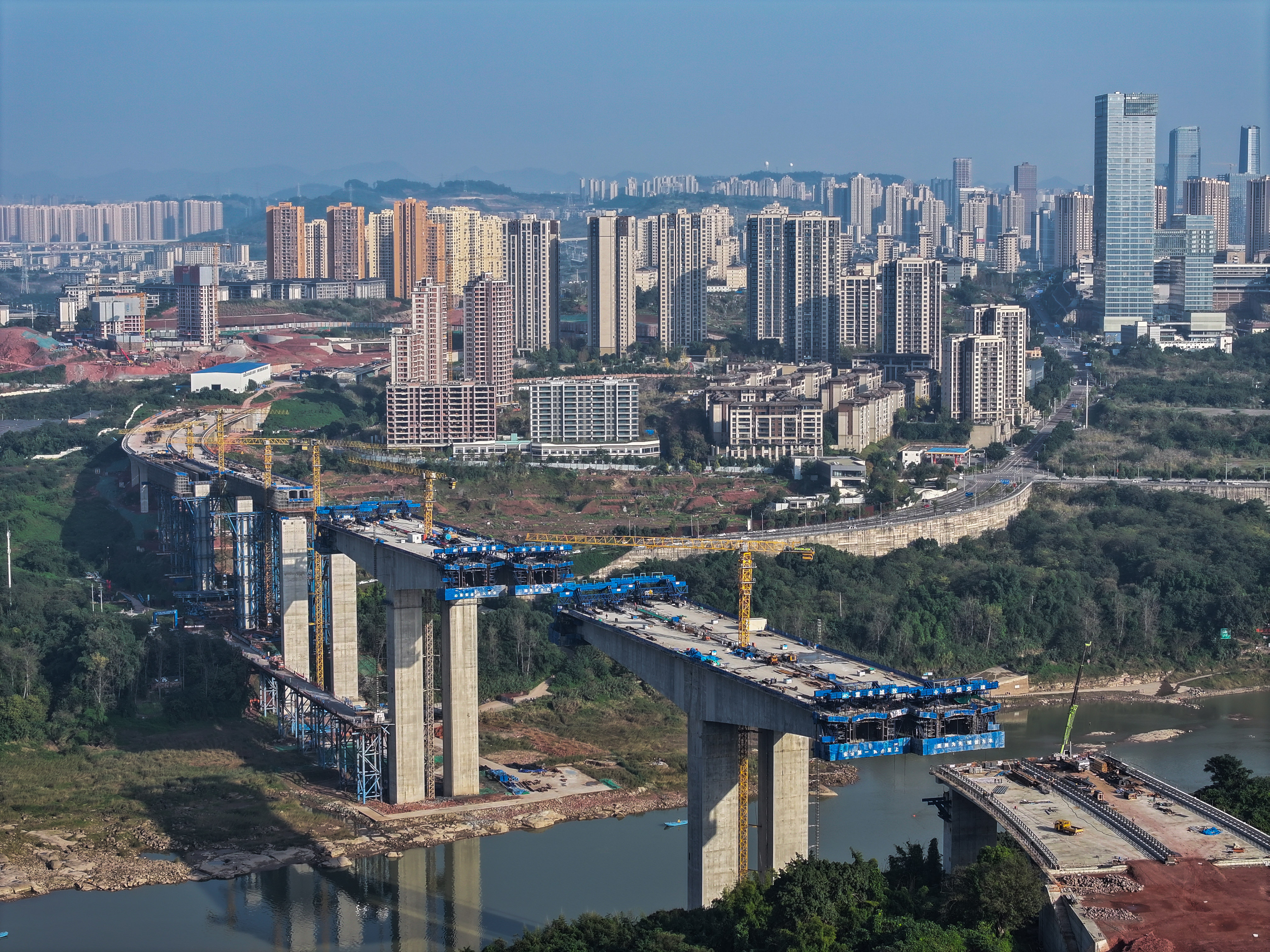 成渝中线高铁一碗水双线特大桥顺利合龙