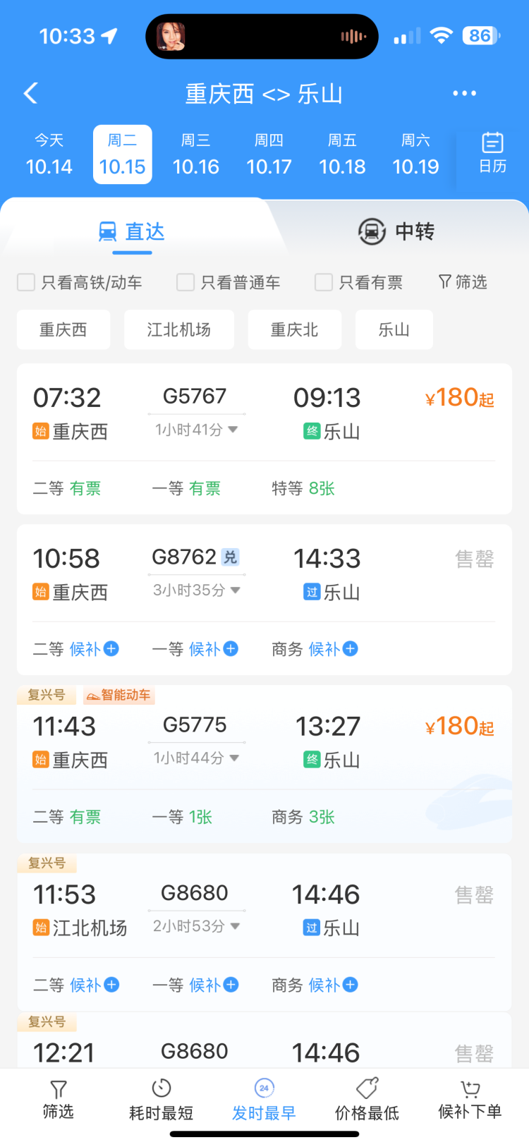 值得一提的是,重庆西—宜宾G5775次延长至乐山终到,这就意味着重庆西到乐山将开通直达列车,重庆西—乐山G5775次重庆西站始发,途经宜宾、宜宾西,终到乐山站;乐山—重庆西G5797次乐山站始发,途经宜宾西、宜宾,终到重庆西站。该线路开通后,重庆到乐山旅行时间将压缩至1小时41分钟,比原来节省1个多小时。