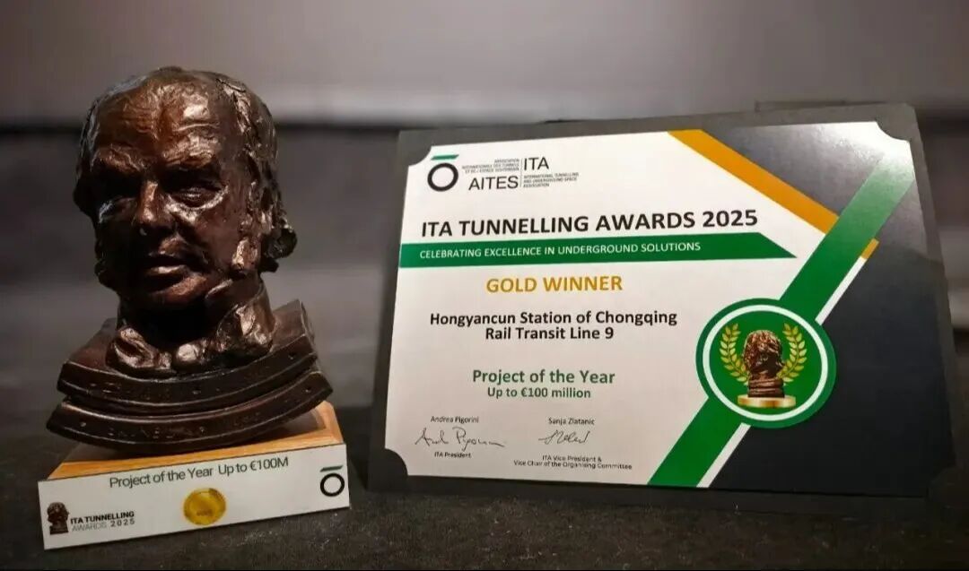 塞尔维亚当地时间10月1日,国际隧道与地下空间协会(简称ITA)公布了第11届隧道奖获奖名单,“重庆轨道交通九号线红岩村站工程”从众多国际项目中脱颖而出,成功摘得“2025年度最佳项目奖(工程投资≤1亿欧元)”金奖。