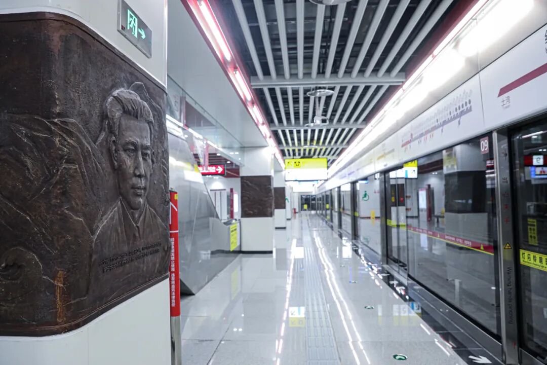 其中,站厅层墙壁上设置着4幅浮雕,分别展示了《红色三岩》《重庆谈判》《雾都明灯》《狱中八条》等内容;站台层24根立柱上雕刻着24位红岩烈士的头像以及介绍。