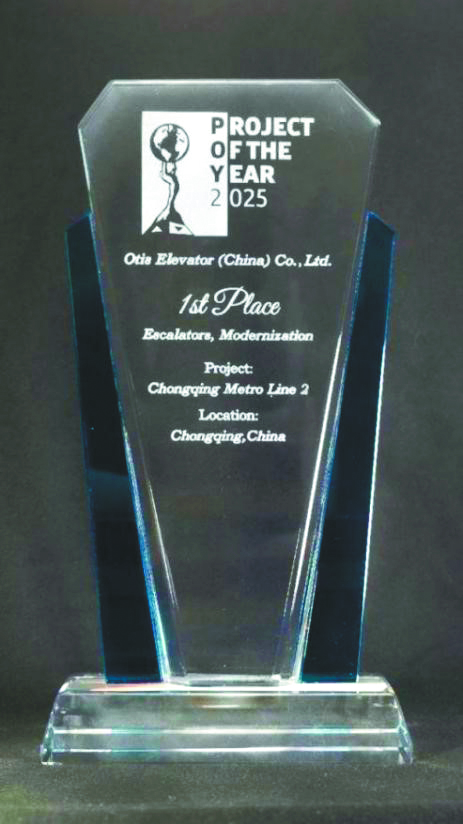 2025年4月,重庆轨道交通2号线电梯改造项目荣获“2025年度电梯世界工程奖”。该奖项是全球电梯行业最高奖项,已评选27届,历届获奖者皆为具有全球影响力的工程,如迪拜哈利法塔电梯群、纽约世贸中心交通枢纽等,评选出的项目都是全球电梯领域的经典之作。