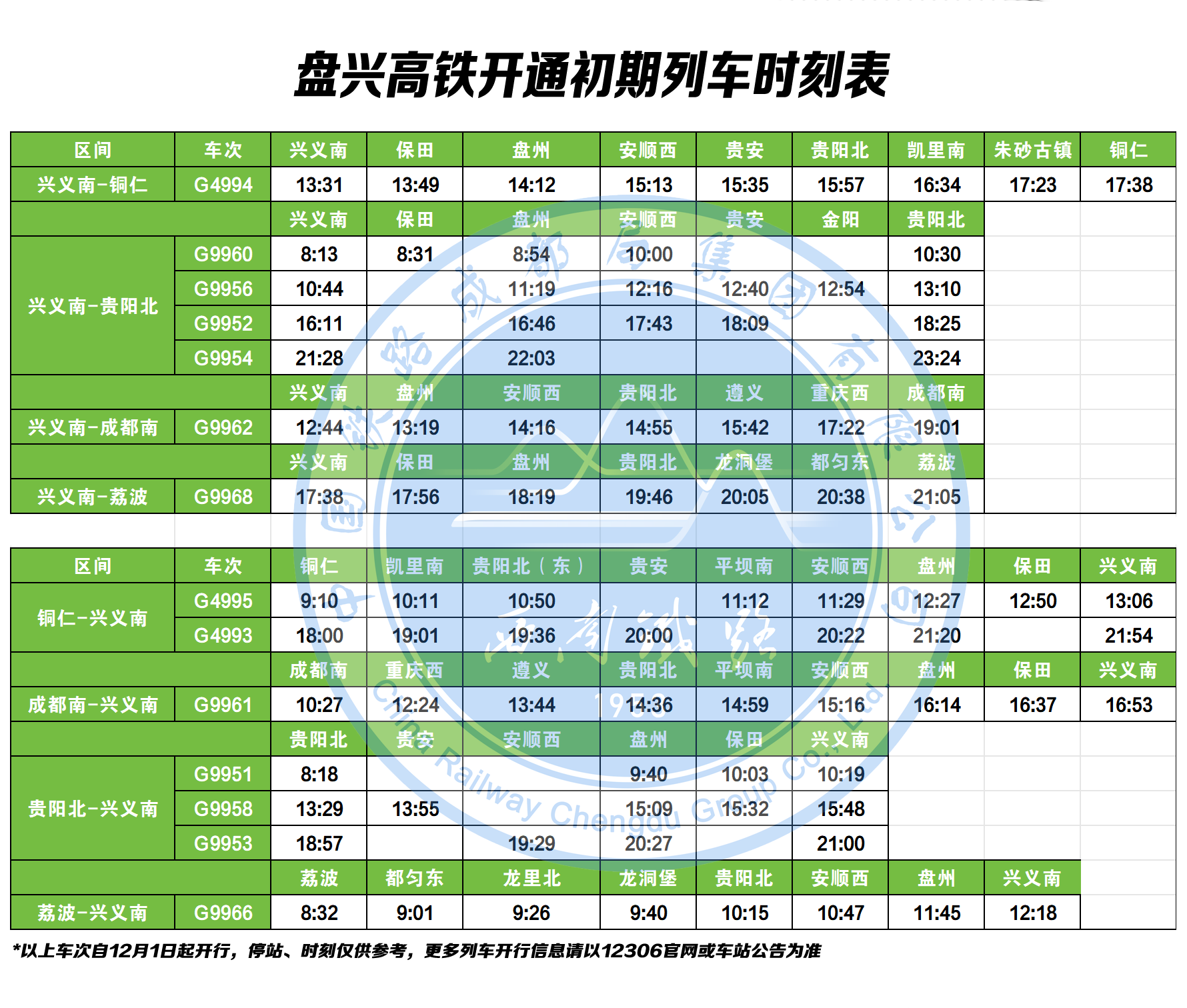 11月28日,盘州至兴义高速铁路(以下简称盘兴高铁)开通运营,每日开行7对动车组列车,重庆西至兴义南站最快4小时29分可达,将有力推动沿线旅游资源开发,促进区域经济社会高质量发展。