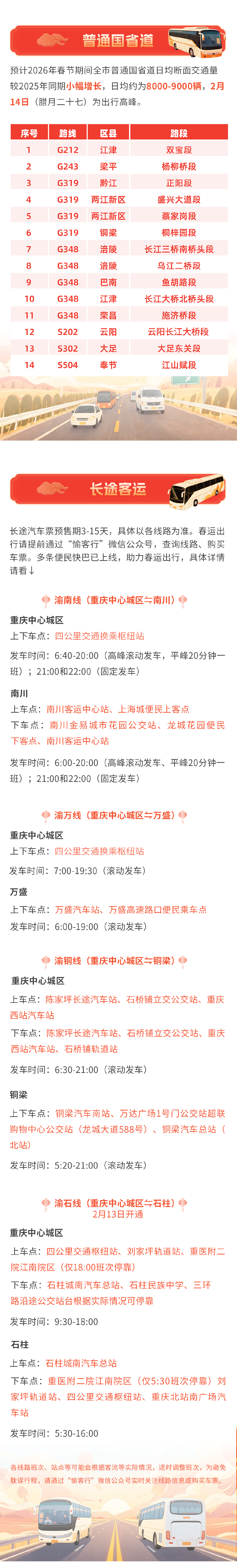 重庆交通部门为您整理了春节出行服务指南,赶紧收藏转发