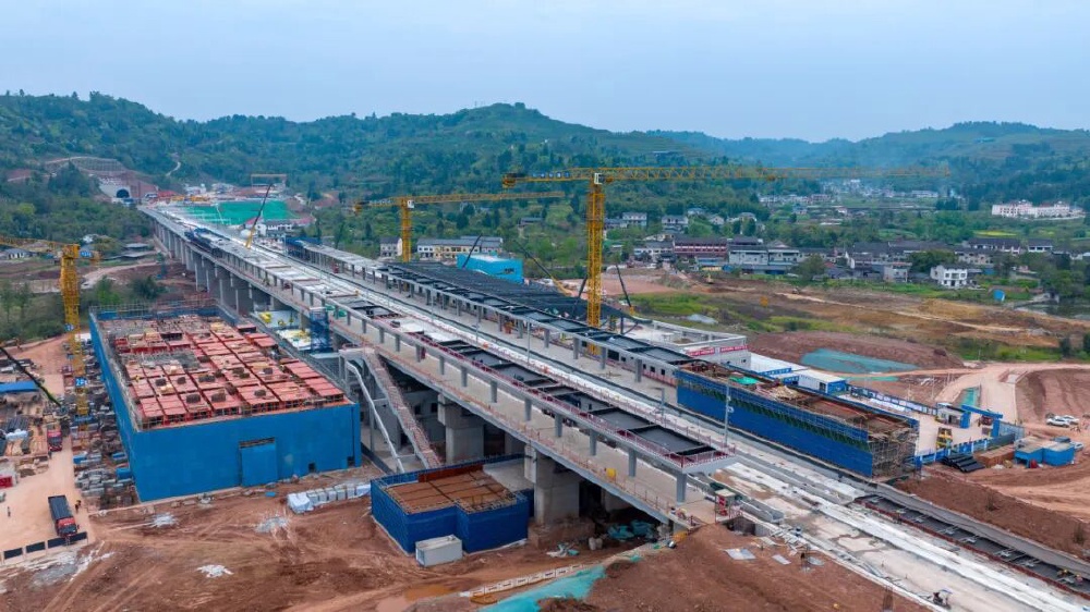 日前,成渝中线高铁重庆大足段建设取得重大进展:全段路基土石方工程全部完成,隧道全线贯通(总长18817米),桥梁下部结构及箱梁架设圆满收官,为后续无砟轨道铺设和铺轨施工奠定坚实基础。同时,大足石刻站站房混凝土主体结构已全面封顶,预计2026年内全面完工并具备静态验收条件。大足段作为重庆段关键控制性区间,其架梁圆满收官进一步加速了整体进度。