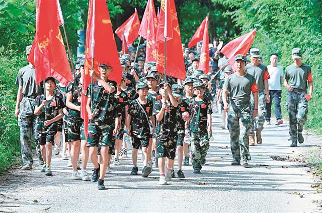 这个夏天,红色成为巴渝大地上最动人的青春底色:在渝中区,孩子们化身“红岩小小讲解员”,穿梭于周公馆、桂园、特园,讲述炽热如初的革命往事;在南川区,30余名少先队员围坐在93岁的老战士夏栋梁身旁,从他的皱纹中读懂烽火岁月的痕迹;在重庆际华园军事营地里,近千名青少年免费参加“少年砺剑 青春报国”主题夏令营,通过军事训练和爱国主义教育筑牢理想信念……