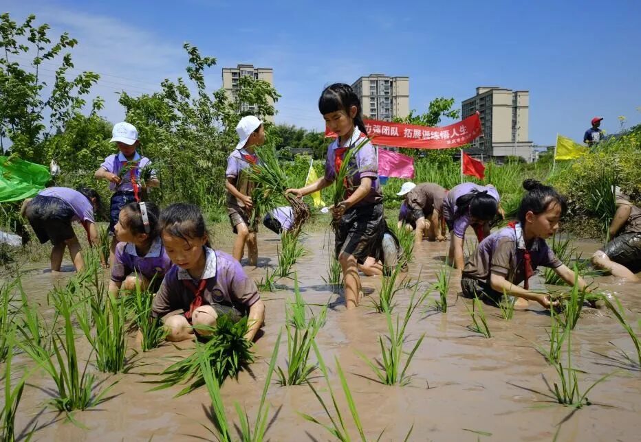两江新区童心青禾小学秉持“向儿童学习”的办学理念,将学校打造成一座“自然馆”。学生们按照时令变化参与农事劳作,插秧、割油菜、打谷子、拔萝卜、挖红薯、掰玉米……将劳动自然而然融入日常学习。
