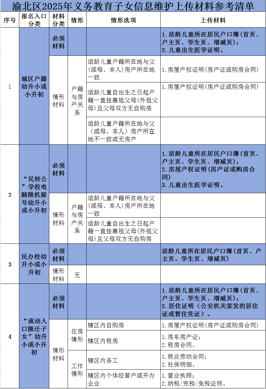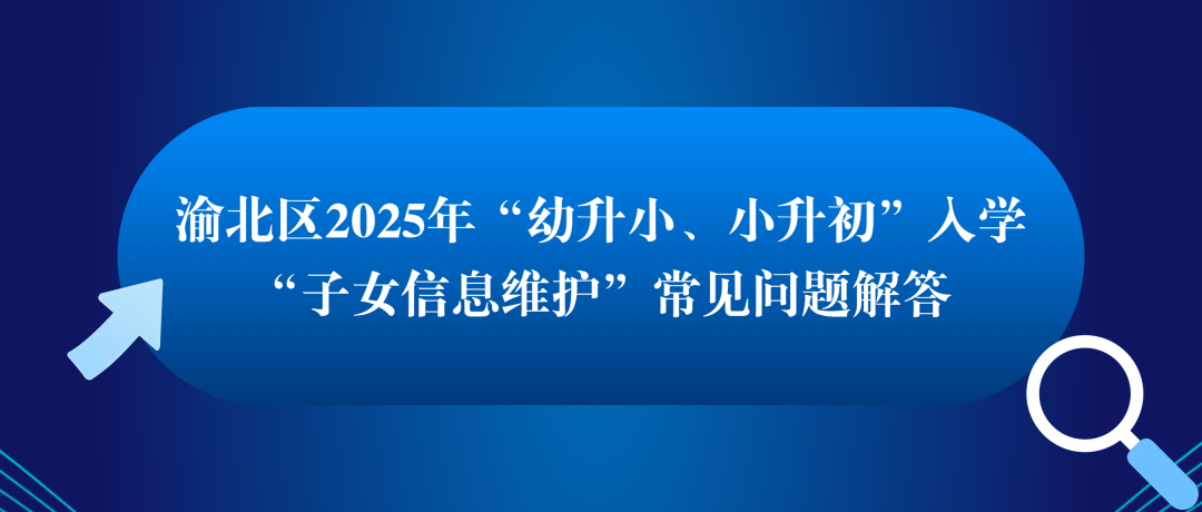 答:渝北区维护子女信息的时间为5月6日起,请家长进入个人空间→我的子女→新增子女,进行子女信息维护。幼升小或者小升初在线申报,需要在正式申报报名时段内才能进入。