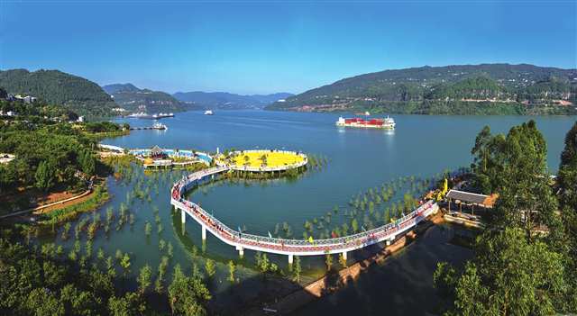因长江而兴,因平湖而美,亲水的基因已经深刻融入万州城市血脉。万州区以“一环两岸十六景”进行规划布局,将三峡平湖旅游区作为都市旅游核心景区进行打造,为城市营造出一片片“绿意空间”和高质量旅游空间。三峡平湖旅游景区已成为三峡黄金旅游带上独有的南北滨江环湖景观旅游区,年接待游客量达400万人。