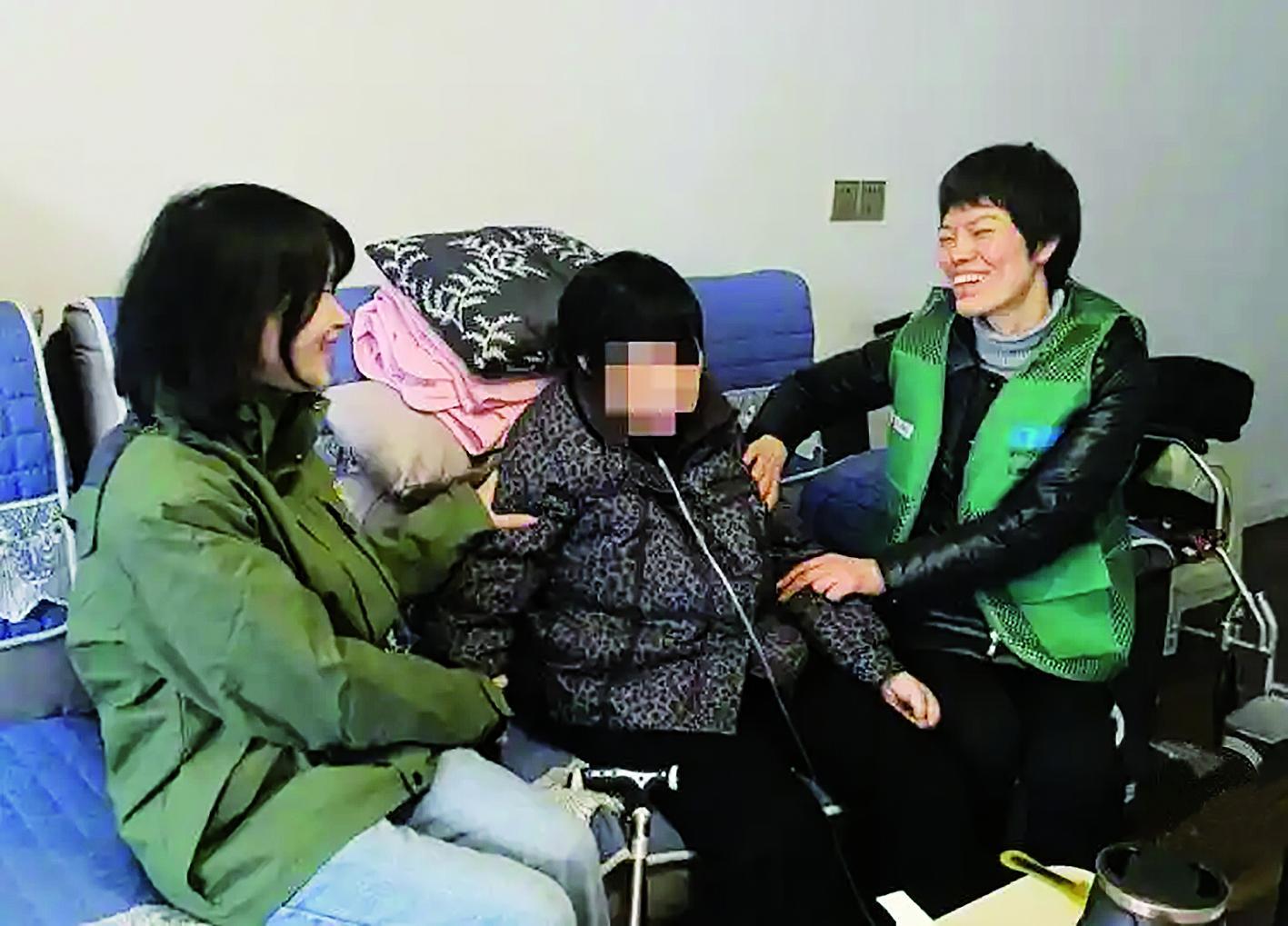 孙钦清(左一)在照顾老人 受访者供图