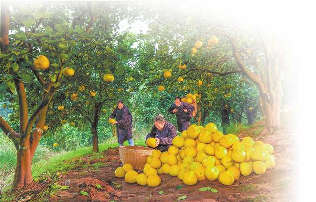 梁平区合兴街道龙滩村,村民采摘梁平柚 摄/熊伟