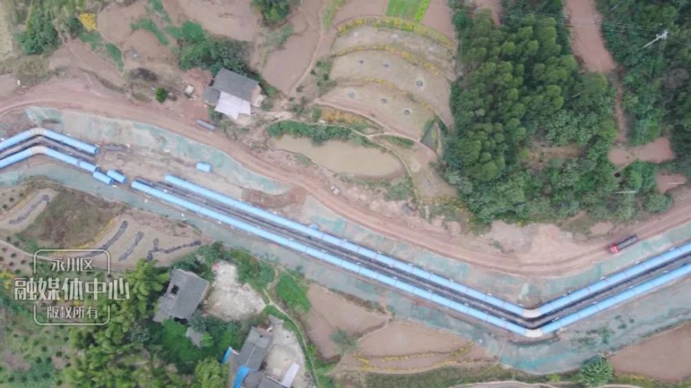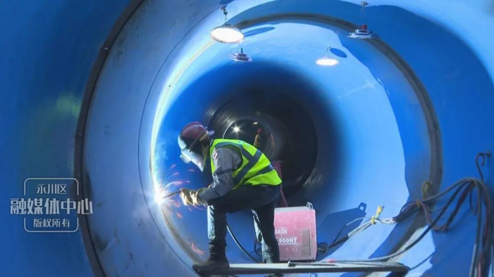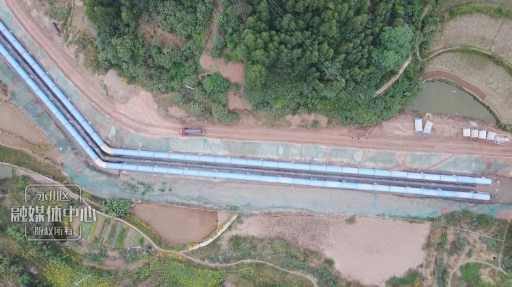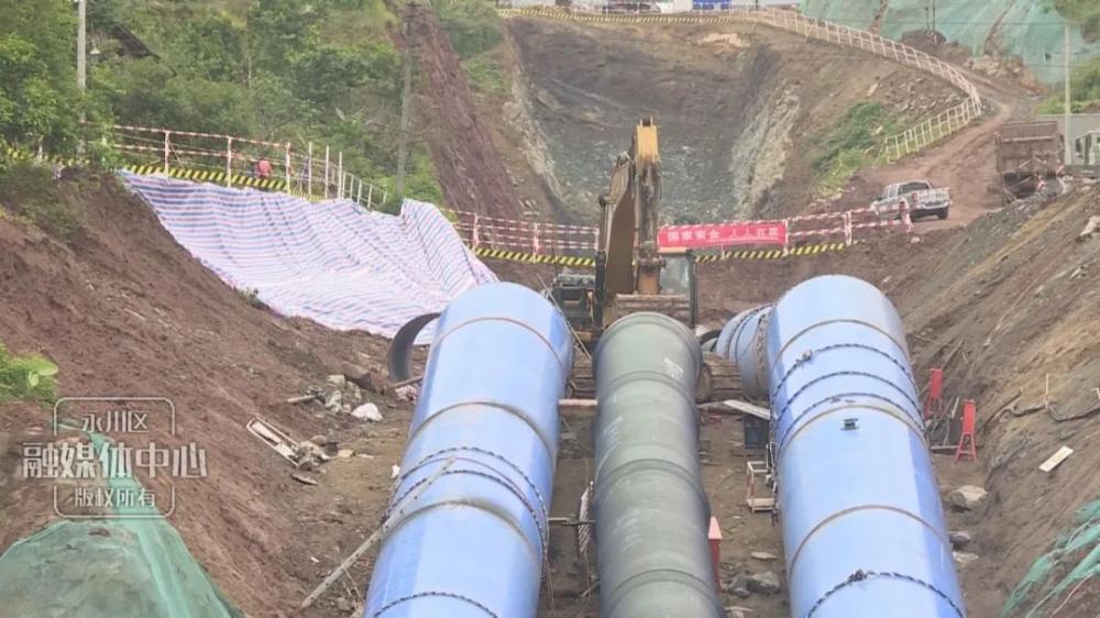 其中临江加压站主要承担永川、大足、荣昌等地的供水任务,现永安隧洞开挖接近1公里,11公里的供水管线填埋也已经全面铺开。