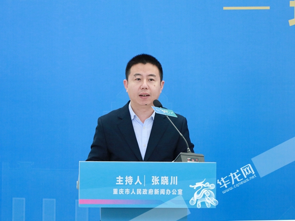 重庆市人民政府新闻办公室新闻发布处副处长张晓川主持发布活动。华龙网-新重庆客户端 崔迪 摄