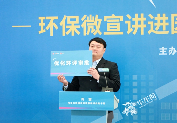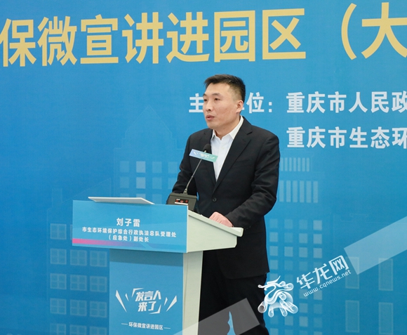 重庆市生态环境局环境影响评价处乔雷做主题分享。华龙网-新重庆客户端 崔迪 摄