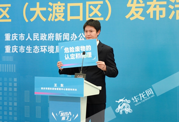 重庆市生态环境保护综合行政执法总队受理处(应急处)副处长刘子雷回答现场企业代表提问。华龙网-新重庆客户端 崔迪 摄
