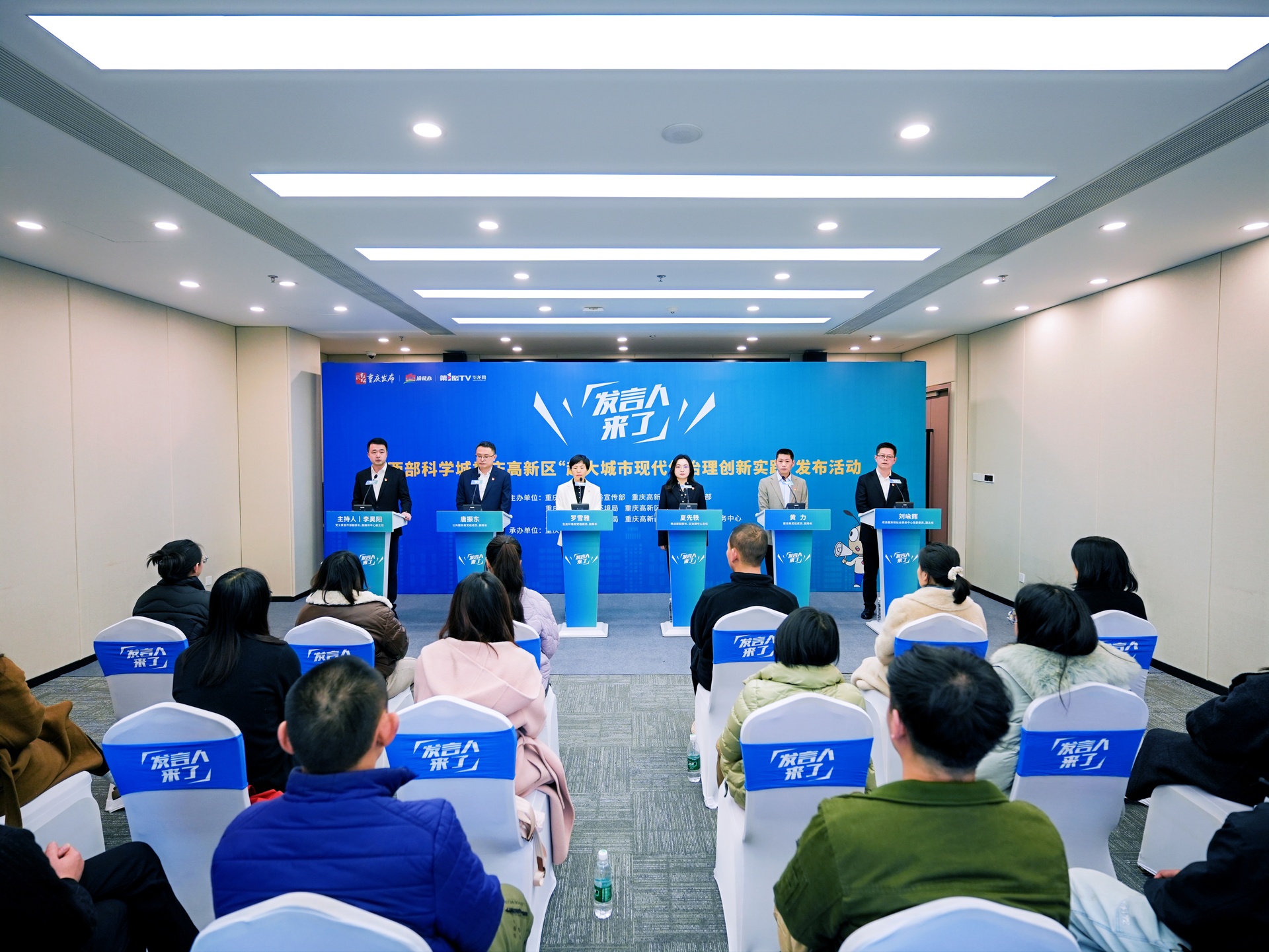 在数字重庆建设按下“快进键”之际,一场聚焦超大城市现代化治理破题的“发言人来了”在西部科学城重庆高新区举行。来自重庆高新区治理中心、生态环境局、建设局、公共服务局、政务服务和社会事务中心的五位“发言人”从整体布局、环境治理、项目建设、养老服务和群众诉求响应,与市民“面对面”展开深度对话,用数据和案例讲述了一座新城如何以科技赋能治理,以智慧温暖民生。